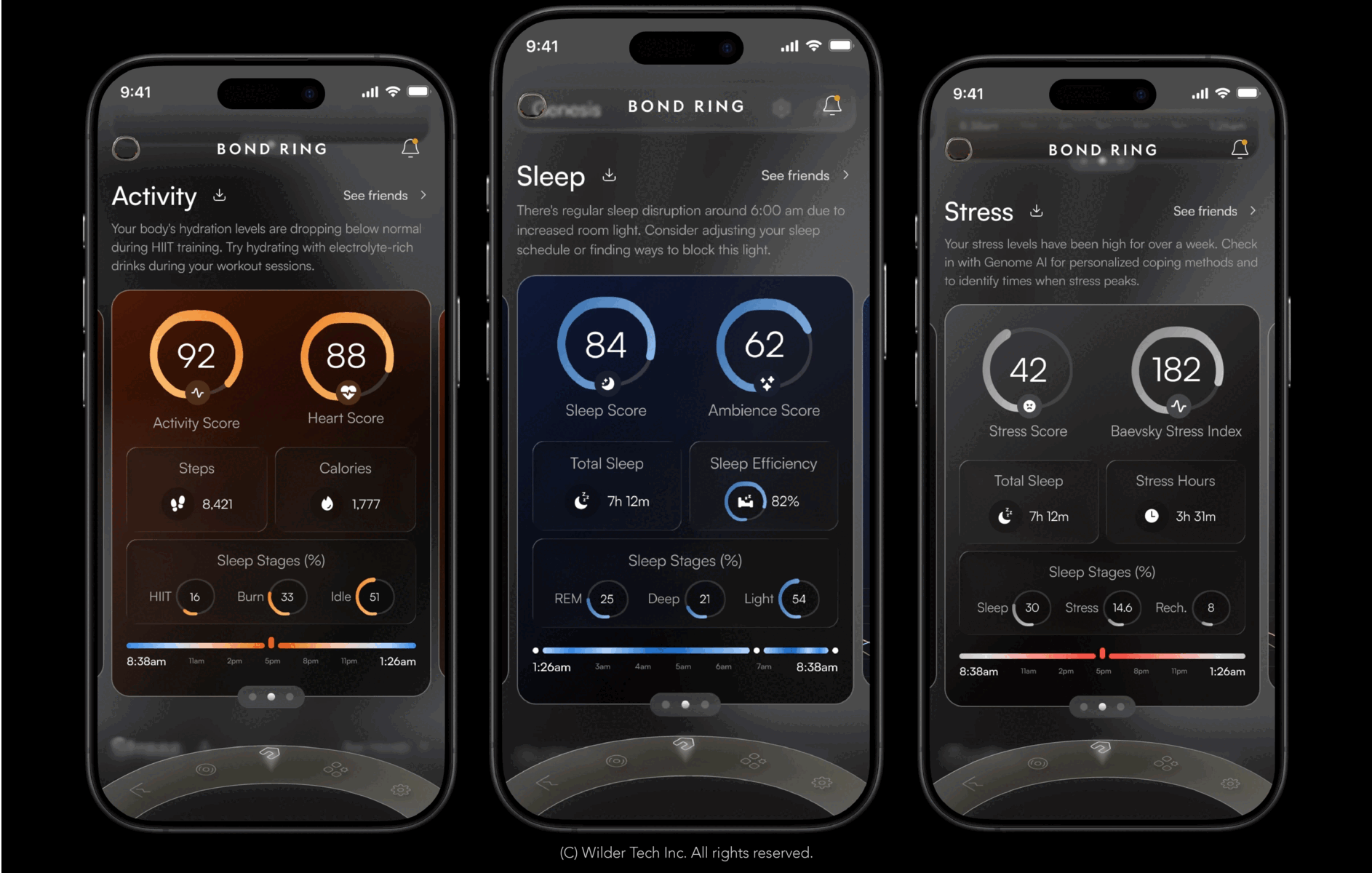 Le grand nombre de capteurs censés être intégrés dans la bague soulève également des inquiétudes. La société affirme que Bond Ring peut enregistrer des ECG et mesurer les tendances de la pression artérielle, la température corporelle, le pouls, la saturation en oxygène (SpO2), la variabilité de la fréquence cardiaque (HRV) et l'absorption maximale d'oxygène (VO2 max). Il est également censé mesurer la composition corporelle, c'est-à-dire la graisse corporelle, les muscles, la masse squelettique et la rétention d'eau. Il ne s'agit là que des capteurs internes, car le petit anneau est également censé être équipé de capteurs d'exposition aux UV, de température ambiante, d'intensité de la lumière ambiante et de niveau sonore.