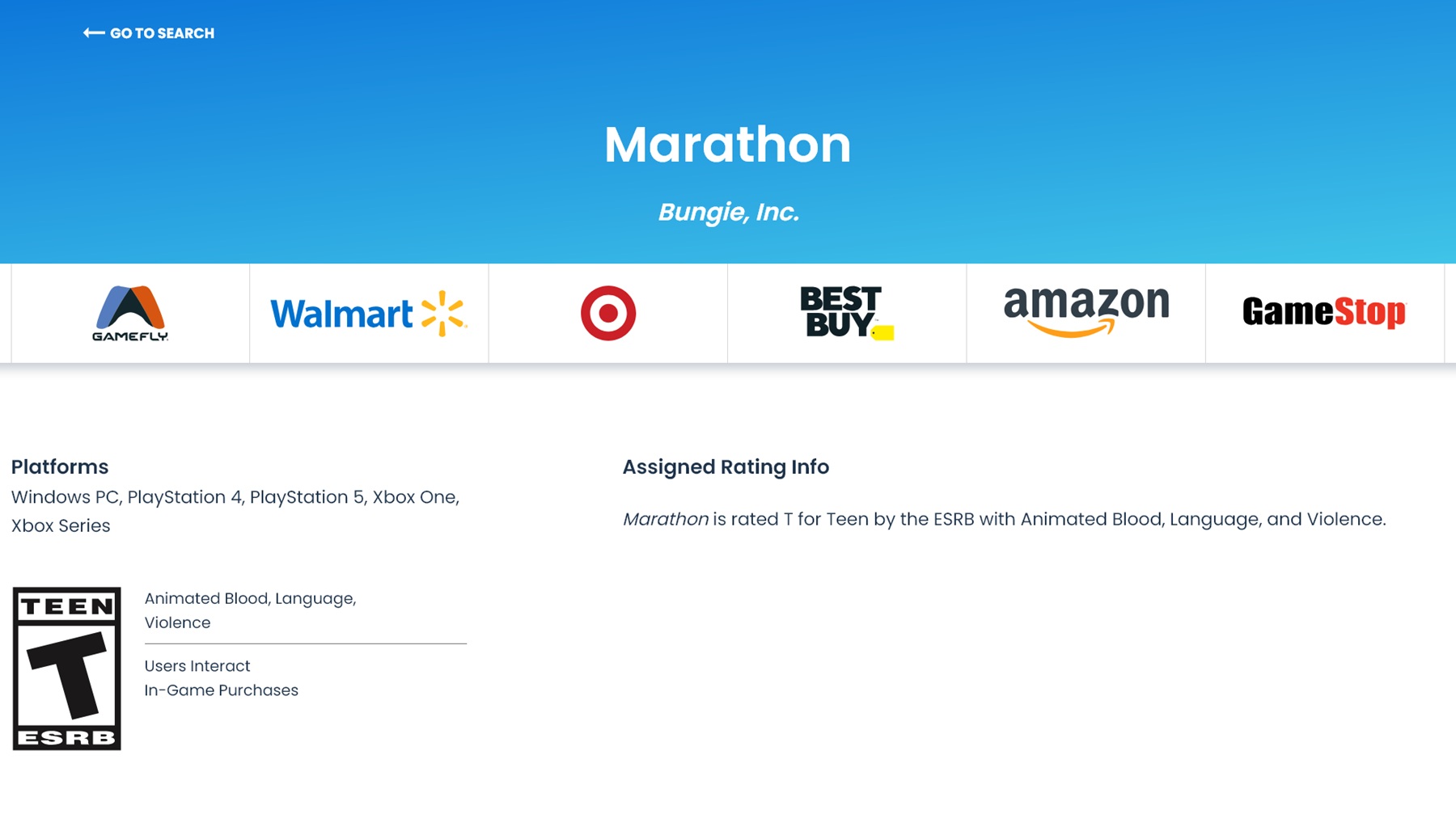 Les fans de PlayStation qui refusent de passer à la PS5 ont reçu une nouvelle surprenante. La page de classification ESRB https://www.esrb.org/ratings/41140/marathon/ pour Marathon est en ligne, listant quelques destinations inattendues pour le jeu de tir d'extraction. Bien que ni Bungie ni Sony n'aient annoncé les plateformes, le jeu pourrait arriver sur la PS4, ainsi que sur la Xbox One.