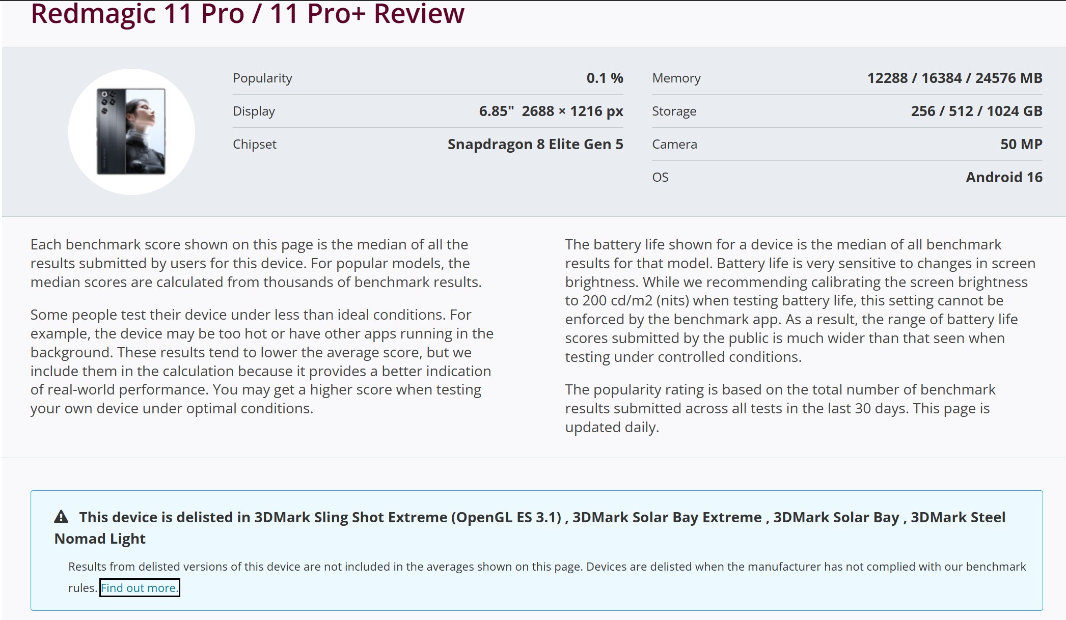 3DMark n'inclut plus les scores de la gamme RedMagic 11 Pro dans ses classements de performances. Ce retrait est intervenu après que la société d'analyse comparative a constaté que la série de téléphones de jeu ne respectait pas ses règles et "trichait" pour obtenir des scores élevés.