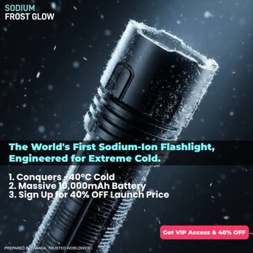 La lampe de poche sodium-ion de Peng Jiang fait actuellement l'objet d'un crowdfunding sur Kickstarter. L'offre "Super Early Bird" peut être précommandée pour 56 $, le prix devant passer à 85 $ par la suite. Ce prix n'inclut pas les frais d'expédition ou d'importation. Les livraisons sont prévues pour mars 2026. Comme d'habitude avec les campagnes de crowdfunding, il n'est pas exclu que la lampe de poche soit retardée ou que sa qualité ne soit pas à la hauteur des attentes.
