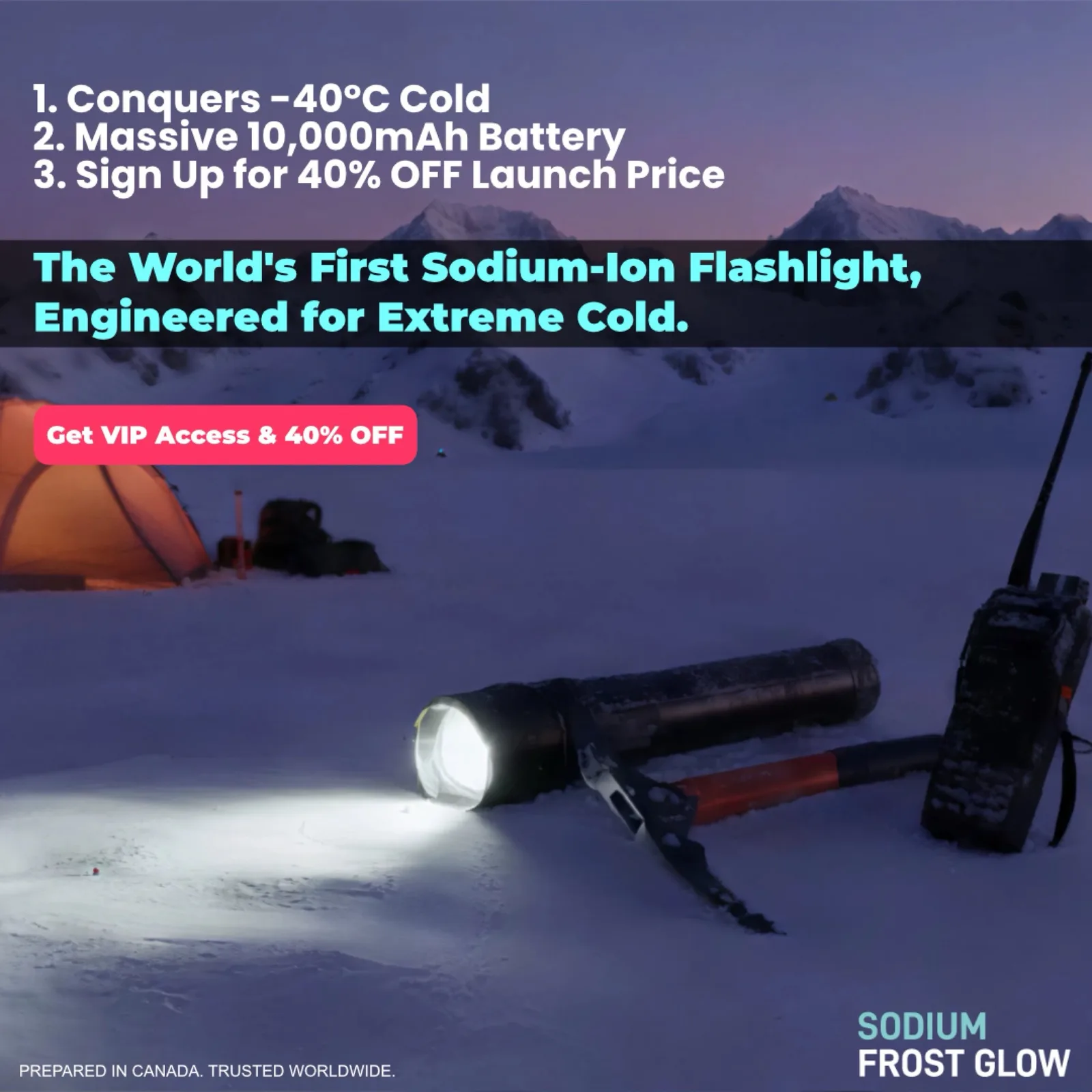 Les piles au lithium fonctionnent mieux au-dessus du point de congélation, car leur tension chute beaucoup plus rapidement à très basse température, ce qui réduit considérablement leur autonomie. Une nouvelle lampe de poche a été conçue pour résoudre ce problème en utilisant une batterie sodium-ion. Cette batterie est censée conserver 88 % de son autonomie habituelle à -40 °C, contre seulement 15 % avec une batterie au lithium.