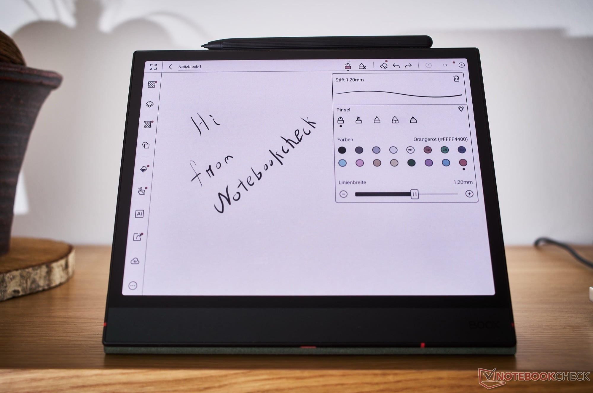 La pièce maîtresse de la tablette est son écran E-Ink de 10,3 pouces basé sur une dalle Kaleido 3, capable d'afficher 4 096 couleurs. En mode couleur, l'écran affiche 1 240 × 930 pixels à 150 PPI ; lorsqu'il n'affiche que du contenu en noir et blanc, la résolution passe à 2 480 × 1 860 pixels. L'écran est suffisamment rapide pour permettre un défilement fluide dans les applications et sur les sites web, mais il est encore mal adapté à la lecture de vidéos car les images rémanentes s'attardent trop longtemps.