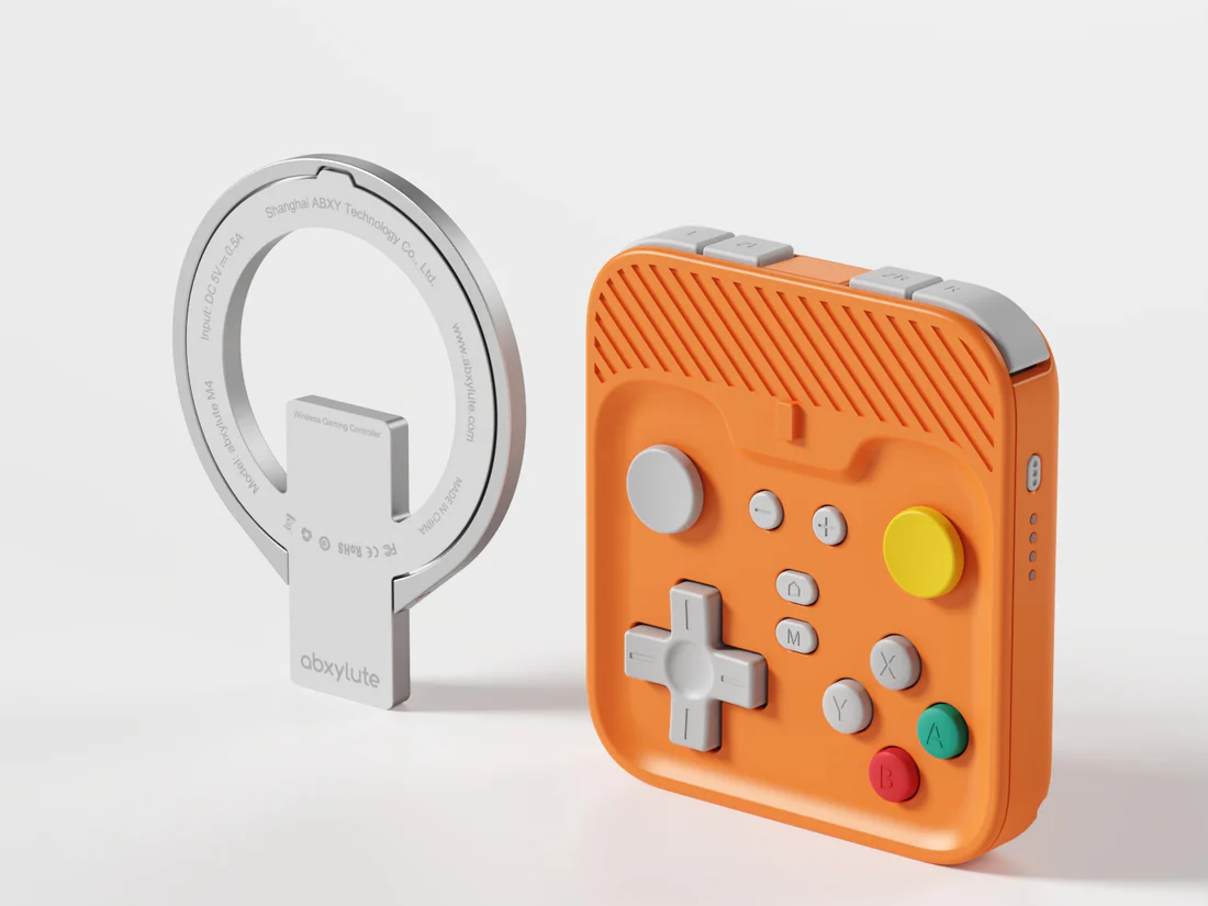 Selon Abxylute, la M4 pèse environ 55 g sans sa béquille magnétique amovible, bien qu'elle contienne une batterie pouvant atteindre 13 heures d'utilisation entre deux charges. Comme le montre le marketing de la société, la M4 est également équipée de boutons ABXY, de gâchettes en ligne, d'un d-pad relativement grand et de sticks analogiques de type PSP. Abxylute propose d'ailleurs des boutons de couleurs différentes pour les finitions noir translucide, gris et orange de la M4.
