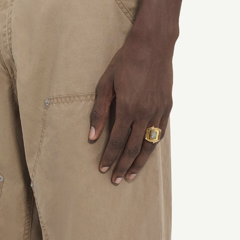 La version de Timex et MM6 ont créé une montre digitale T80, minuscule et portable, disponible dès à présent sous forme de bague. Il s'agit d'une réduction littérale de la présentation numérique rétro de Timex - un boîtier minuscule, un masque en miroir au-dessus de l'écran et une bague en acier à expansion au lieu d'un bracelet. La collaboration habille le petit module T80 d'une finition dorée et de l'identité MM6, puis l'emballe comme un bijou plutôt que comme une montre-bracelet conventionnelle.