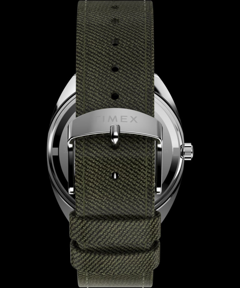 Timex et Bespoke Post ont réapprovisionné leur montre de terrain en édition limitée, lancée à l'origine en avril 2025. La montre à quartz de 36 mm est essentiellement une réinterprétation du design de la Timex Viscount des années 1970 ( )elle est dotée d'un boîtier en acier inoxydable en forme de tonneau, d'un verre acrylique bombé pour la distorsion vintage, d'aiguilles et de marqueurs lumineux, de chiffres arabes, d'une piste intérieure rouge de 24 heures, de marqueurs jaunes pour les minutes et d'une aiguille orange pour les secondes. Elle offre une résistance à l'eau de 50 m et est montée sur un bracelet en Cordura olive de 18 mm, doublé de cuir et doté de barrettes à ressort à dégagement rapide.