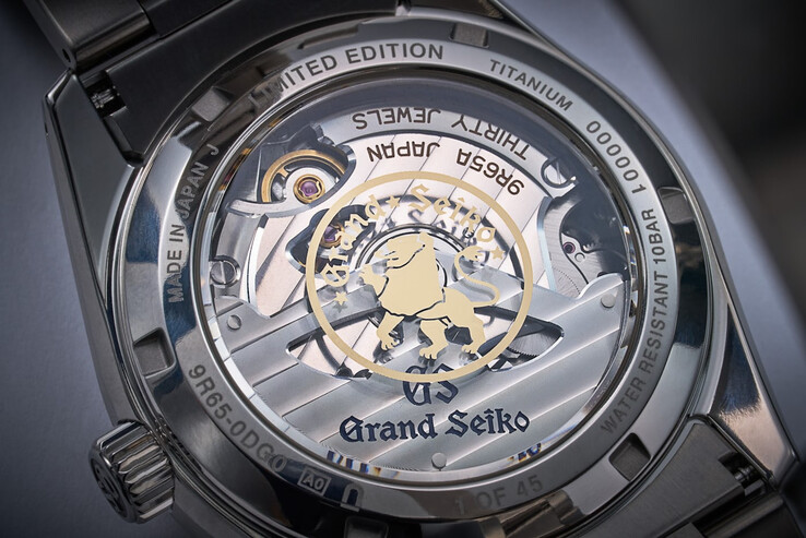 La montre est animée par le calibre 9R65le mouvement Spring Drive qui a fait ses preuves. Il offre une réserve de marche de 72 heures et une aiguille des secondes fluide et glissante que les fans de Grand Seiko adorent. Le mouvement est visible à travers le fond du boîtier, montrant la finition "Shinshu Wave" sur les ponts et le rotor.