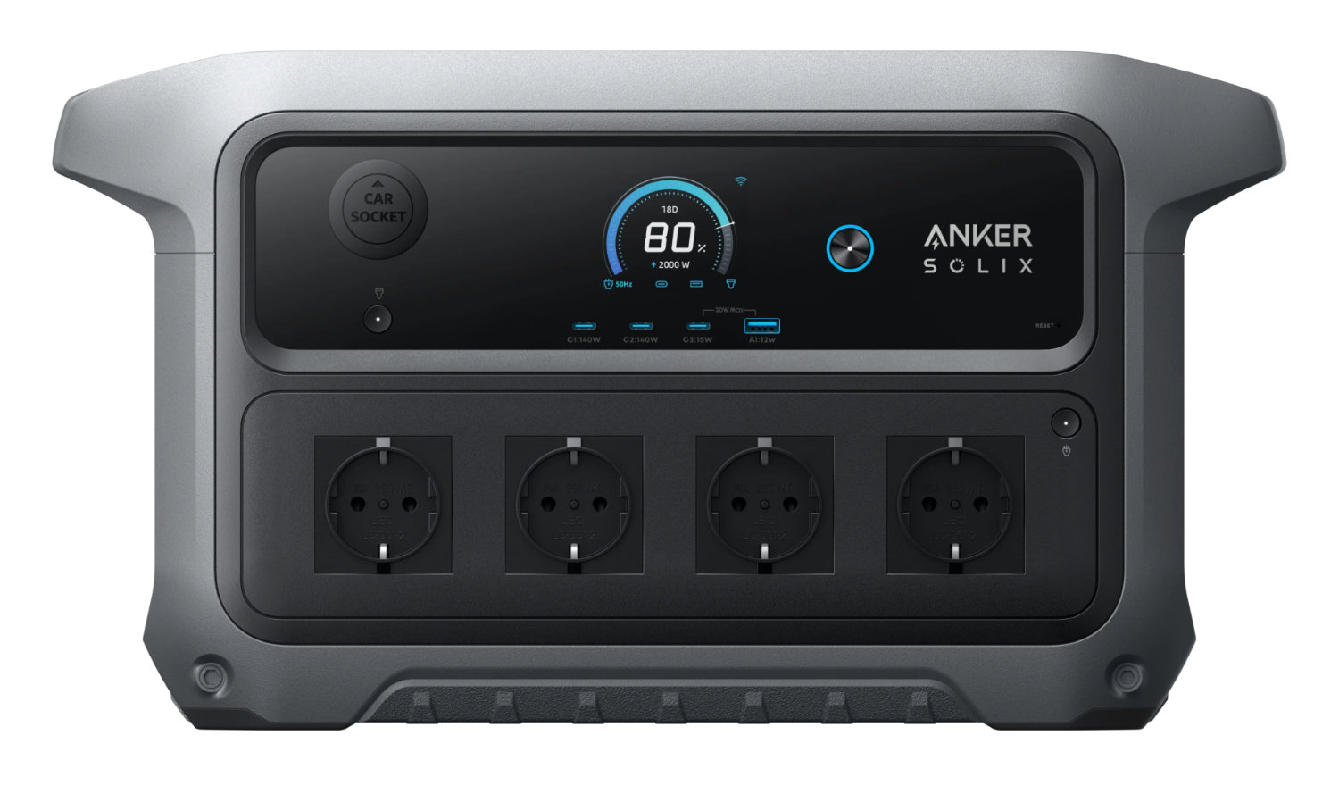 La Solix C2000 Gen 2 dispose d'une capacité de charge rapide, avec six méthodes de recharge proposées. Lorsqu'il est chargé avec une combinaison de courant alternatif et de courant solaire, il devrait se recharger complètement en 58 minutes. Les autres méthodes de recharge comprennent un chargeur d'alternateur, une prise de courant de voiture ou un générateur à gaz. L'Anker Solix C2000 Gen 2 dispose de neuf ports de sortie au total, avec une puissance continue de 2 400 W et une puissance de crête de 4 000 W. Les sorties comprennent quatre ports CA, une prise de courant et une prise d'alimentation. Les sorties comprennent quatre ports CA, un chargeur de voiture, un port USB-A de 12 W et trois ports USB-C, dont deux peuvent délivrer jusqu'à 140 W. Le C2000 Gen 2 pèse 18,9 kg et mesure 455 x 258 x 311 mm, ce qui le rend relativement compact et léger.