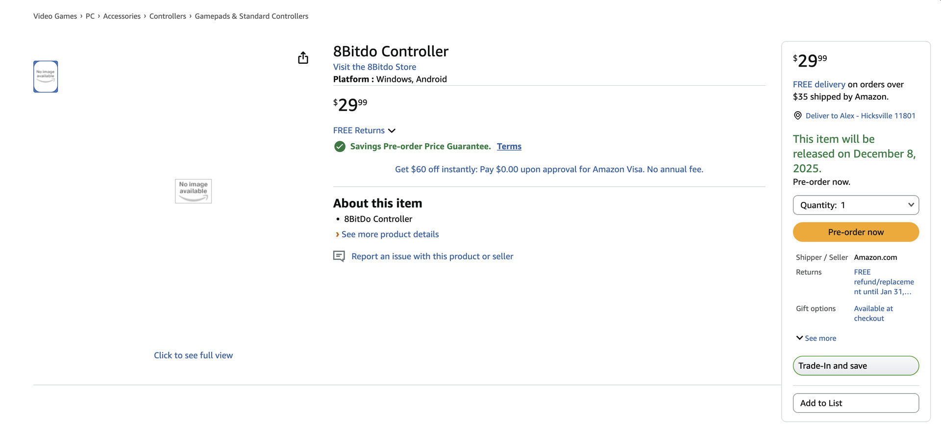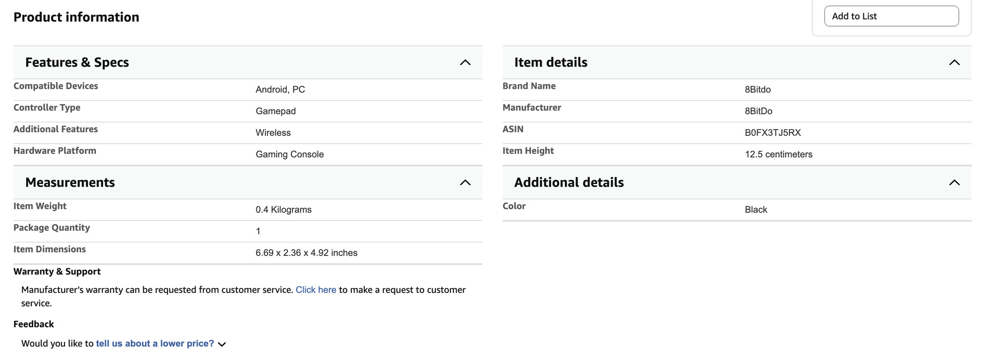 Il semblerait que 8BitDo ait au moins une nouvelle manette sans fil en préparation avant Noël. Pour rappel, la société a célébré le 40e anniversaire de la NES le mois dernier avec plusieurs appareils en édition limitée, dont une manette Bluetooth Ultimate 2 à thème. Aujourd'hui, le compte X Wario64 a donné un premier aperçu de ce qui est simplement appelé le "8BitDo Controller" sur Amazon.
