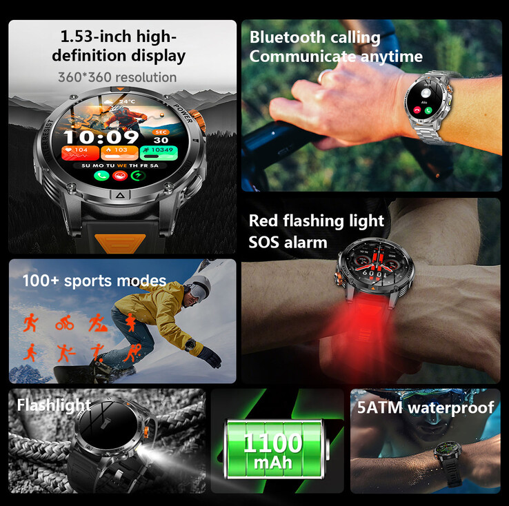L'appareil comprend une torche unique à double éclairage avec des sources LED blanches et rouges. Ce système offre une luminosité réglable et un mode stroboscopique pour les situations d'urgence, associé à une alarme SOS sonore. La plupart des montres bon marché utilisent la luminosité de l'écran comme lampe de poche, de sorte qu'une torche physique dédiée est quelque peu fonctionnelle si vous prévoyez de la porter à l'extérieur.