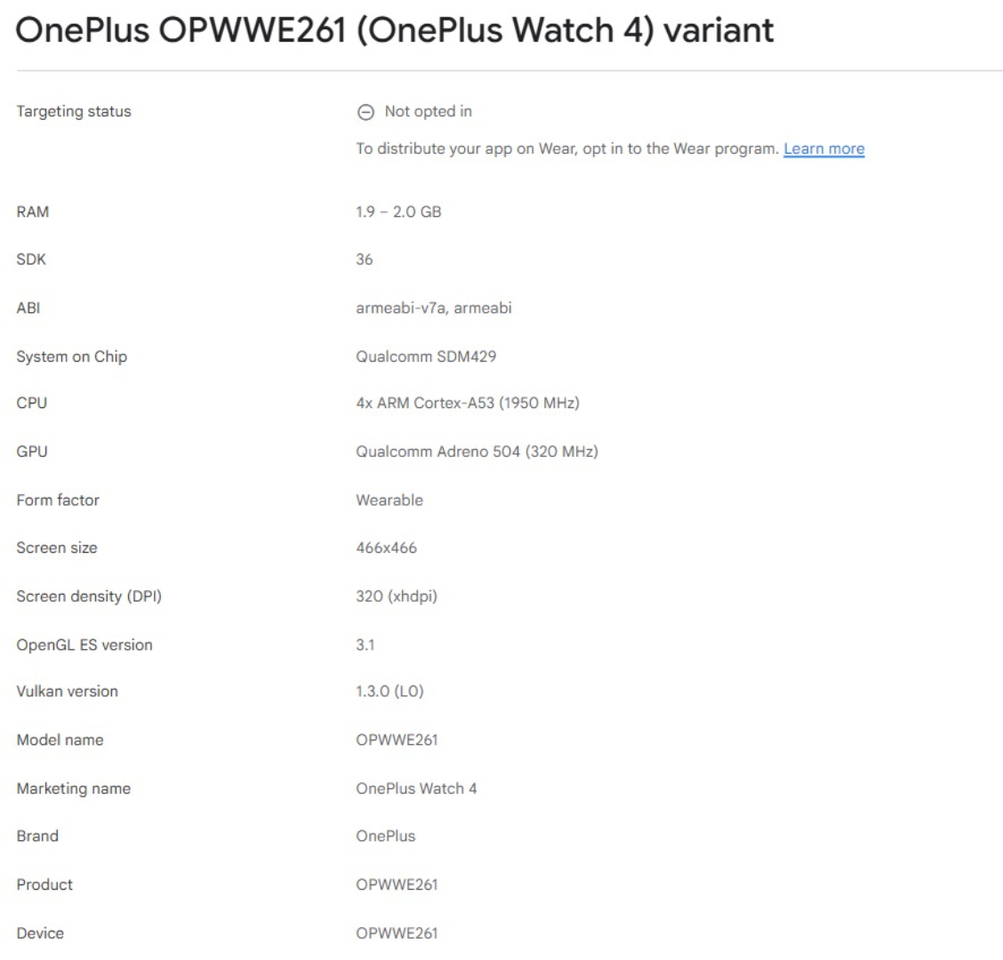 Malheureusement, précédentes suggestions que OnePlus a repris le matériel de l'ancienne watch 3(actuellement 249,99 $ sur Amazon). Par exemple, la Google Play Console indique que la Watch 4 combine 2 Go de mémoire vive et le processeur Qualcomm Snapdragon W5 Gen 1 de Qualcomm plutôt que le nouveau chipset Snapdragon Wear Elite.