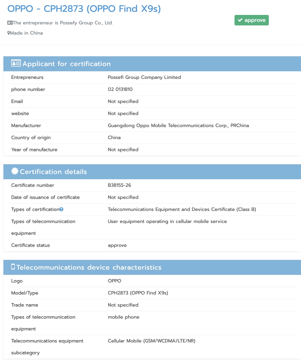 Notamment, le Find X9s d Oppo Find X9s portant le numéro de modèle "CPH2873" a récemment été certifié par l'organisme de réglementation thaïlandais NBTC. Cela laisse supposer que le Find X9s pourrait être lancé à l'échelle mondiale, contrairement au Find X8squi était limité au marché chinois.