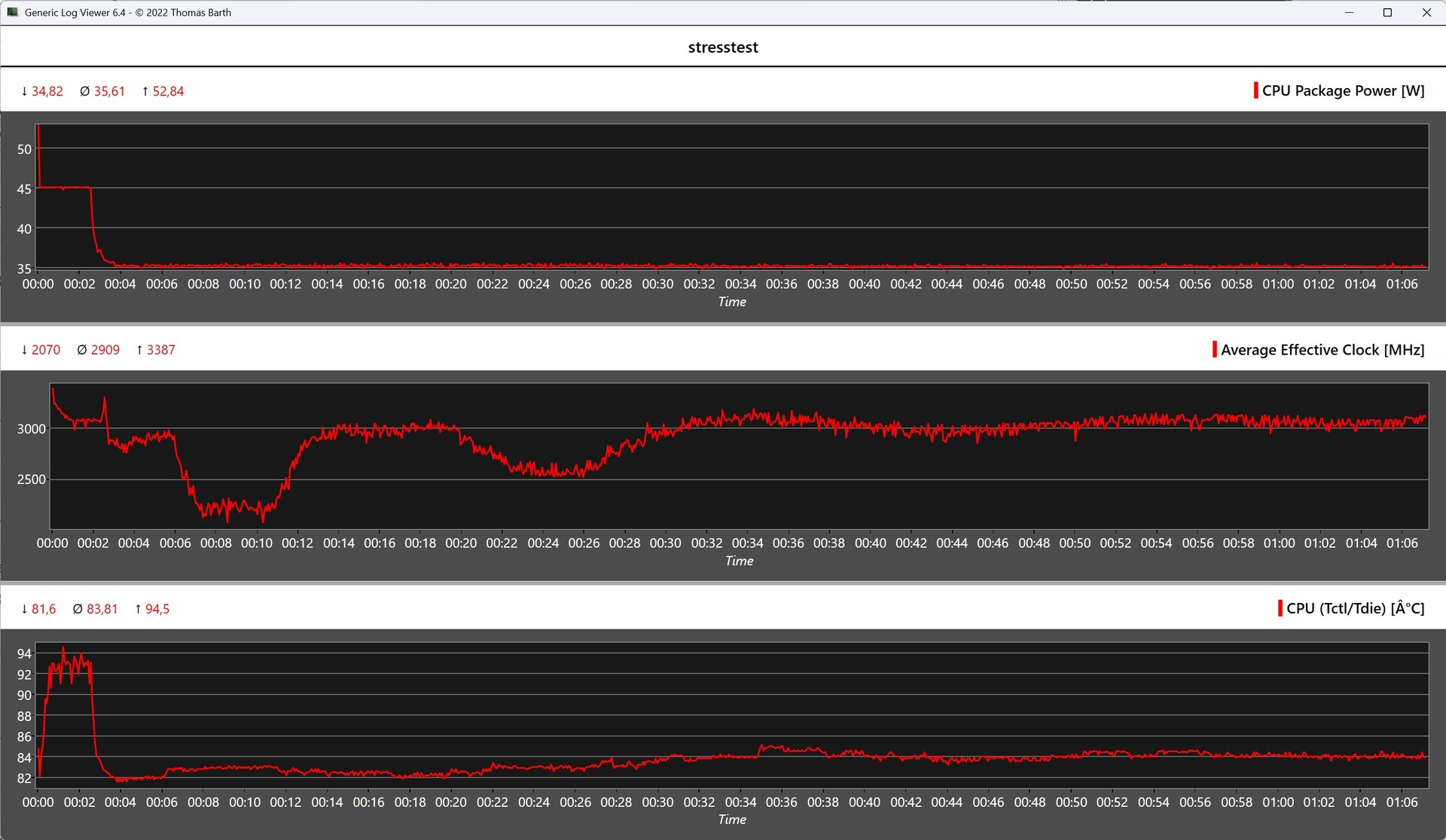 Grâce à son système de refroidissement sophistiqué, le boîtier de l'Alliwava H90 Pro reste froid même lorsqu'il est fortement sollicité. Il n'y a qu'au niveau des ouvertures d'aération arrière que l'on constate un réchauffement notable. Lors du test de stress, l'AMD Ryzen 7 8745HS atteint brièvement des températures d'environ 94°C, mais cela reste dans la plage de sécurité. La consommation moyenne de l'APU est d'environ 35 watts.