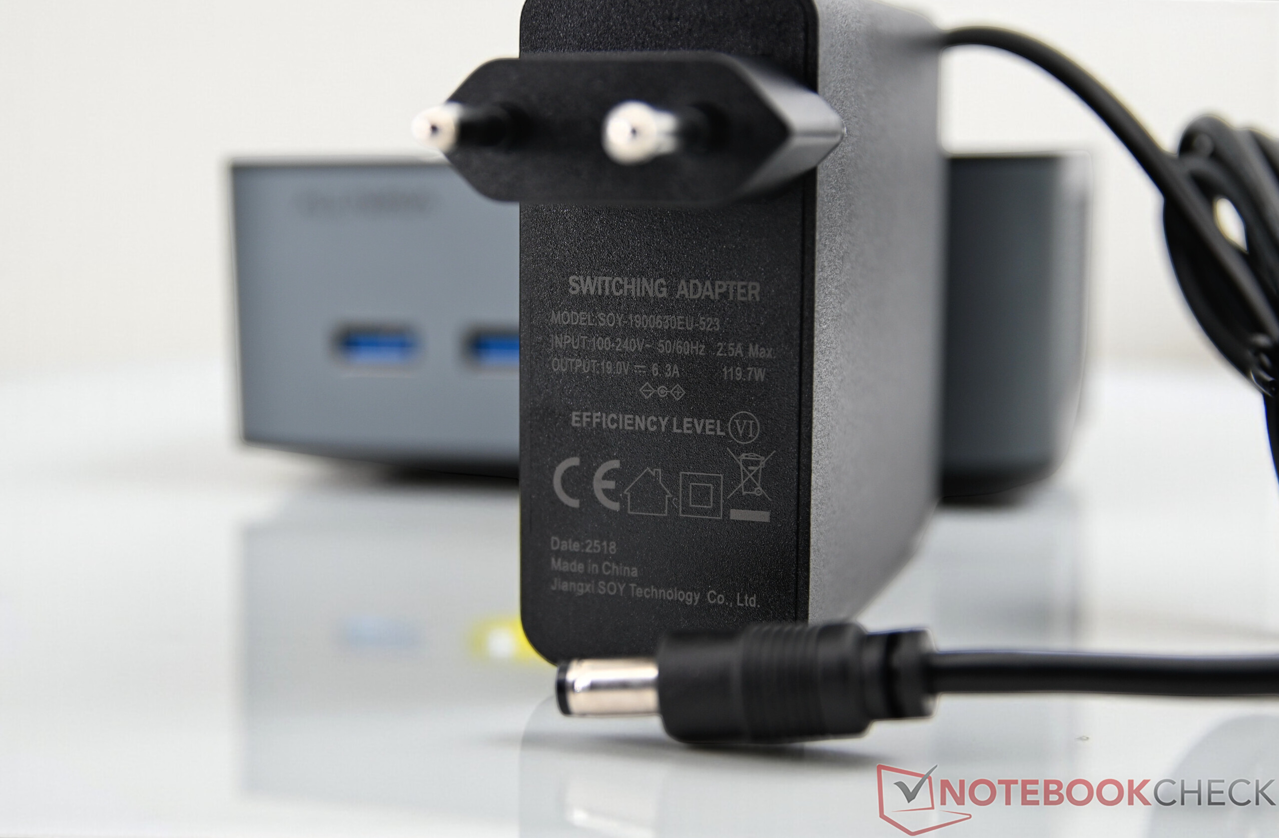 L'Alliwava H90 Pro est très économe en énergie en mode veille, tandis qu'une consommation moyenne d'environ 62 watts et des valeurs de pointe allant jusqu'à 80 watts sont mesurées en pleine charge. Dans l'ensemble, le mini-PC impressionne par son efficacité énergétique élevée, qui est principalement due aux limites de puissance modestes du processeur. Le bloc d'alimentation de 120 watts fourni est bien équilibré en termes de performances et offre des réserves suffisantes.