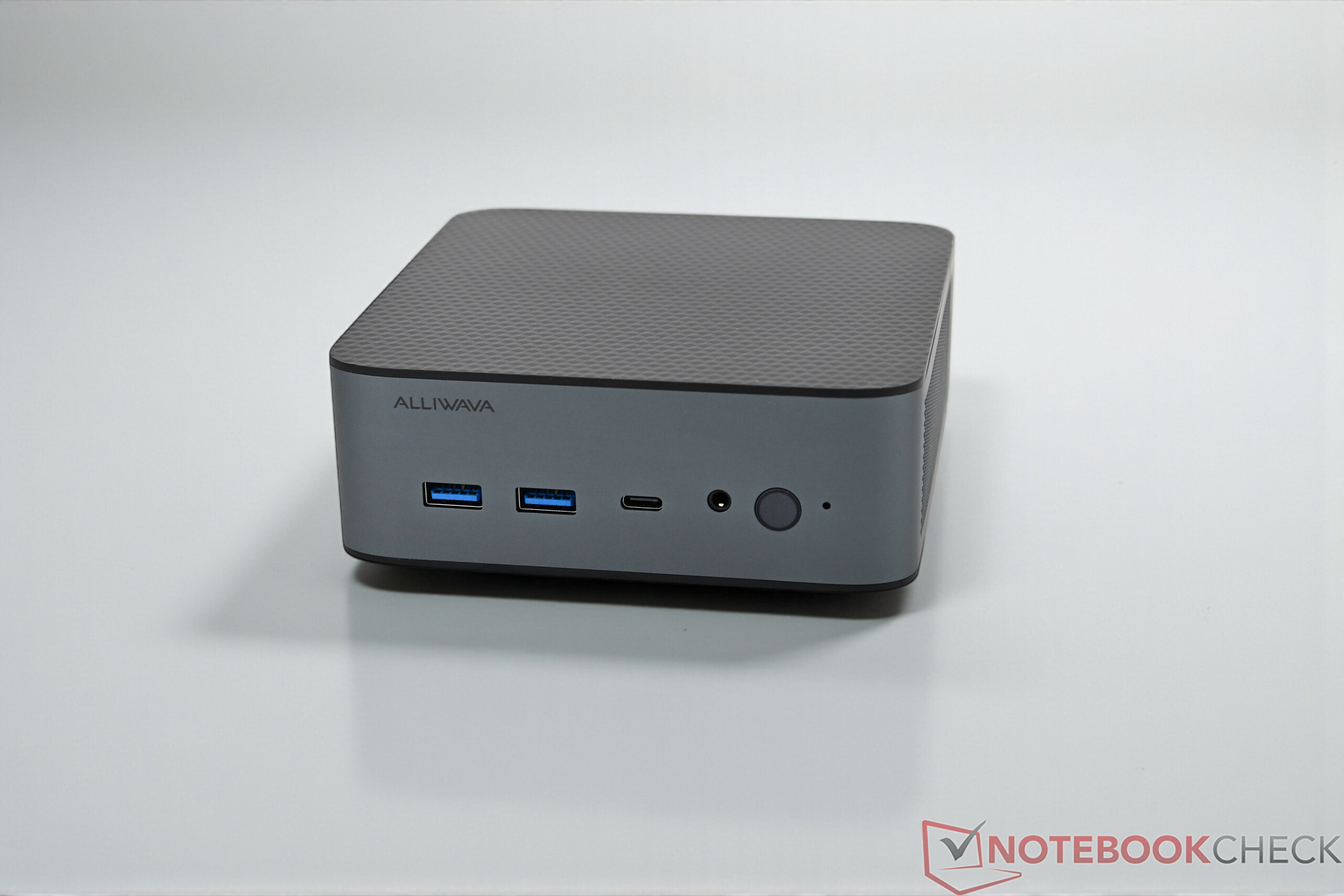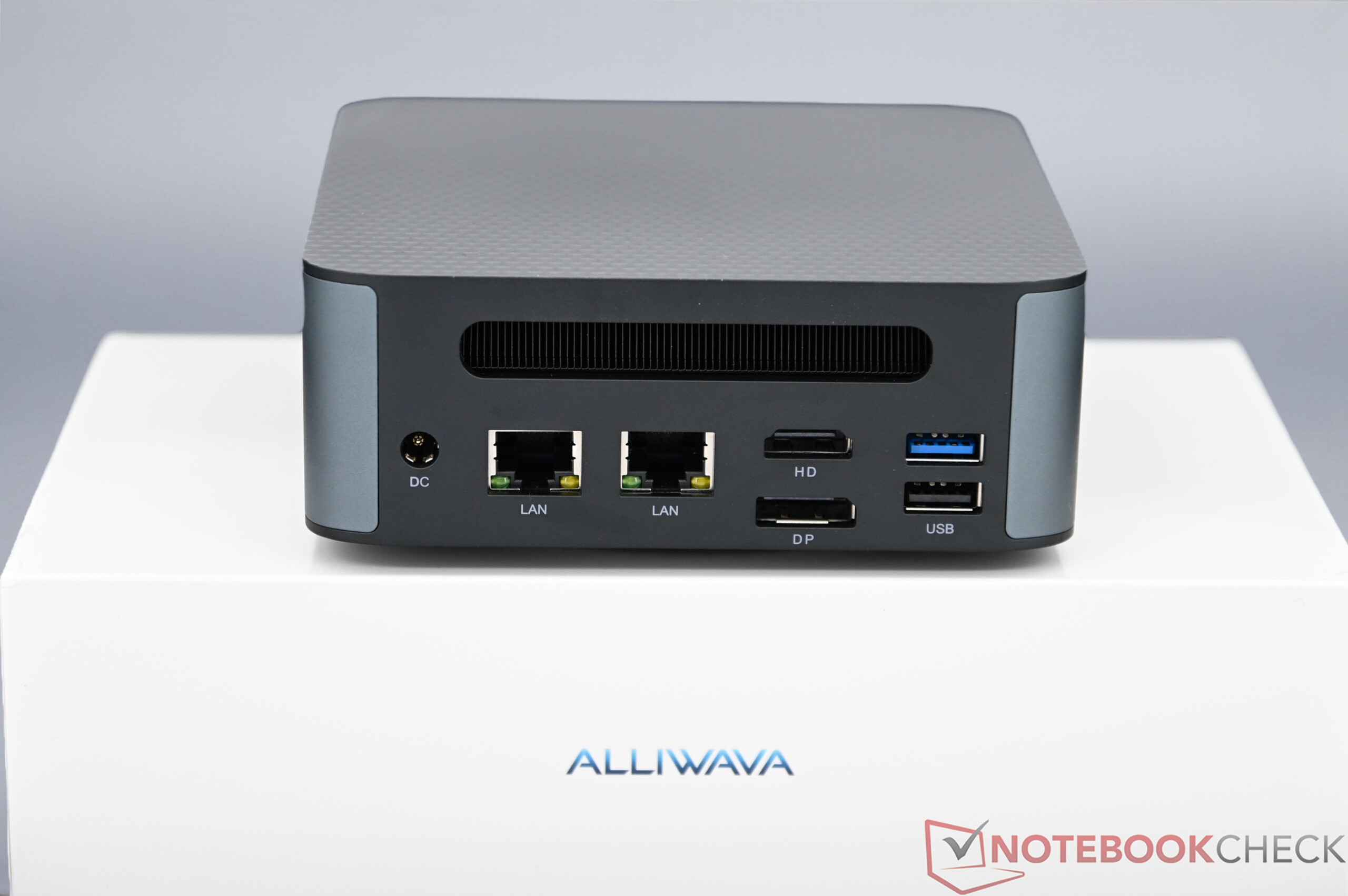 L'Alliwava H90 Pro se présente sous la forme d'un boîtier en aluminium de haute qualité, avec des dimensions compactes et un poids d'environ 500 grammes. Alors que la base est en aluminium, le couvercle et le dessous du boîtier sont en plastique, ce qui ne nuit guère à l'impression générale de solidité et de qualité. Les connexions sont judicieusement réparties à l'avant et à l'arrière et offrent un bon choix pour une utilisation quotidienne au bureau ou à la maison. Les interfaces modernes telles que USB4 ou OCuLink doivent cependant être abandonnées. Néanmoins, l'Alliwava H90 Pro peut contrôler jusqu'à trois écrans simultanément. L'équipement réseau avec deux ports LAN de 2,5 gigabits et un WLAN rapide font également partie des atouts de ce mini-PC compact originaire d'Extrême-Orient.