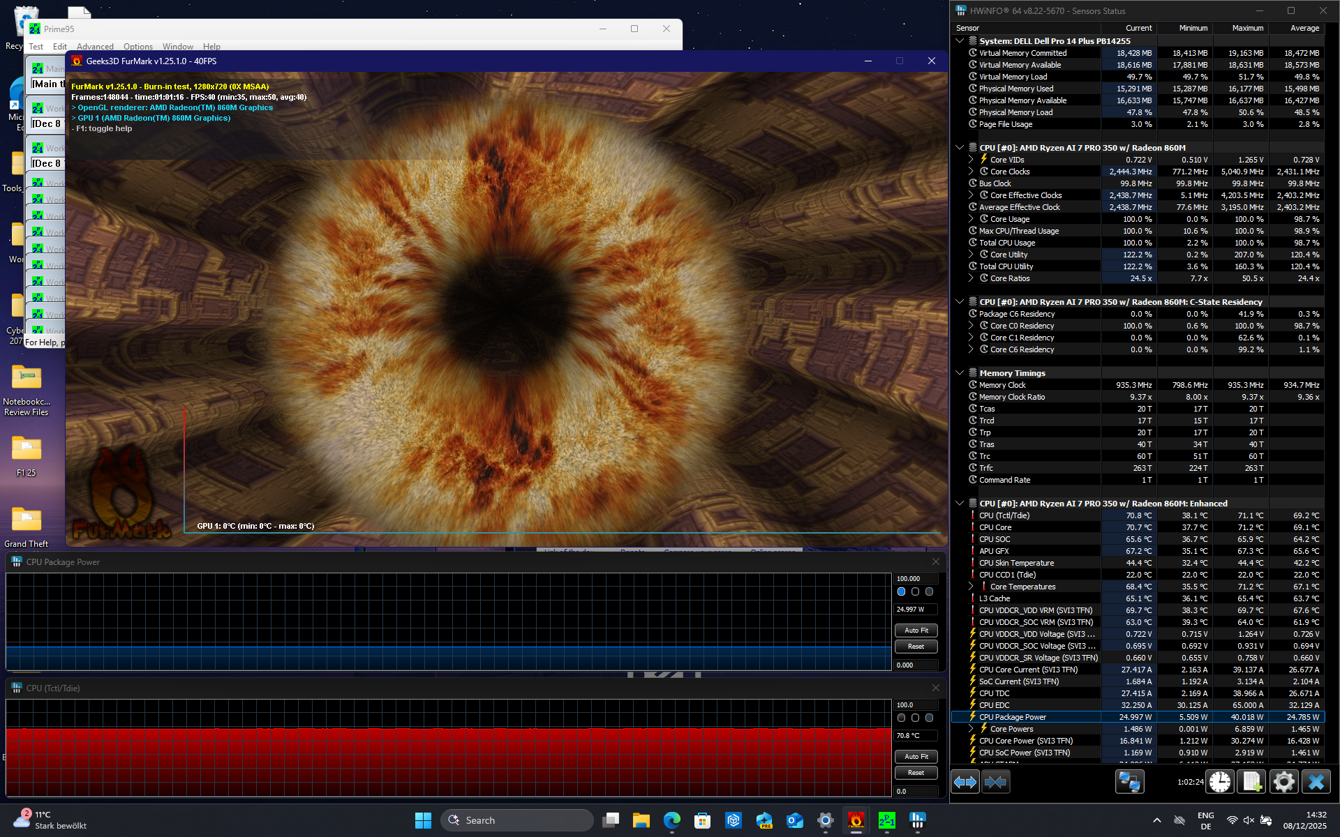 Même après une heure, l'ordinateur portable Dell Pro peut maintenir la consommation d'énergie du processeur à 25 W, il n'y a donc pas d'étranglement.