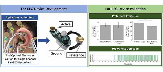 Samsung a également introduit une technologie d'interface cerveau-ordinateur portable par le biais d'un appareil EEG circum-auriculaire conçu en collaboration avec l'université Hanyang ( ). Ce nouveau dispositif est compact et conçu pour une surveillance continue en dehors des environnements de laboratoire. Les tests montrent une précision de 92,86 % pour la prédiction des préférences en matière de contenu vidéo et de 80 % pour la détection de la somnolence, ce qui pourrait avoir des applications dans des domaines tels que le neuromarketing, l'éducation et la productivité. La recherche sur l'EEG portable était le seul article de fond dans le journal IEEE Sensors (Vol. 25, Issue 18)selon Samsung, la recherche sur l'EEG portable était le seul article présenté dans le rapport. Selon les contributeurs au projet, la technologie peut également être utilisée dans d'autres domaines, notamment le divertissement et la gestion de la santé mentale.