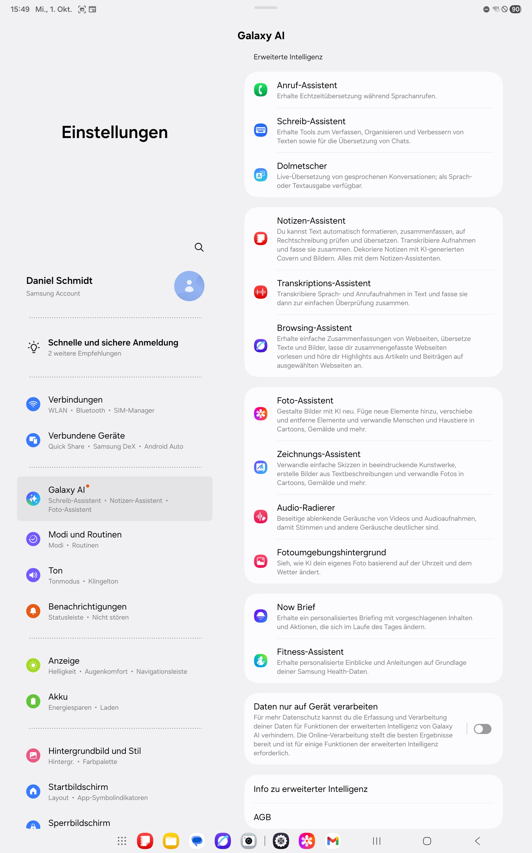Samsung a considérablement remanié le mode DeX. Il peut toujours être projeté sur un écran externe via un câble ou sans fil, mais il peut désormais aussi être utilisé dans toute son étendue directement sur la tablette. Le passage du mode tablette classique au mode DeX peut se faire d'un simple geste de balayage, ce qui permet de redimensionner et de positionner les fenêtres et les applis comme on le souhaite. À cela s'ajoute la prise en charge d'un maximum de quatre bureaux.