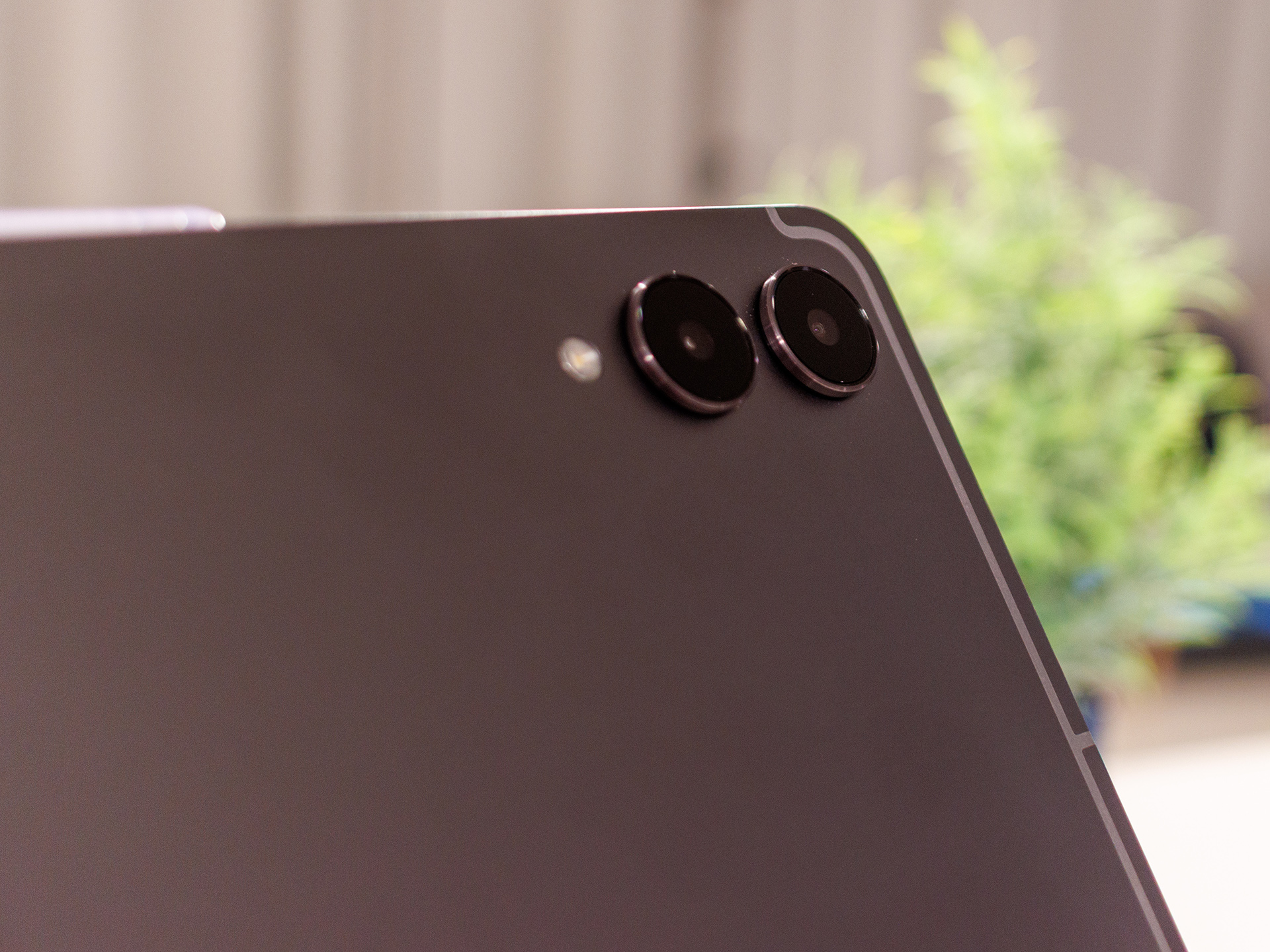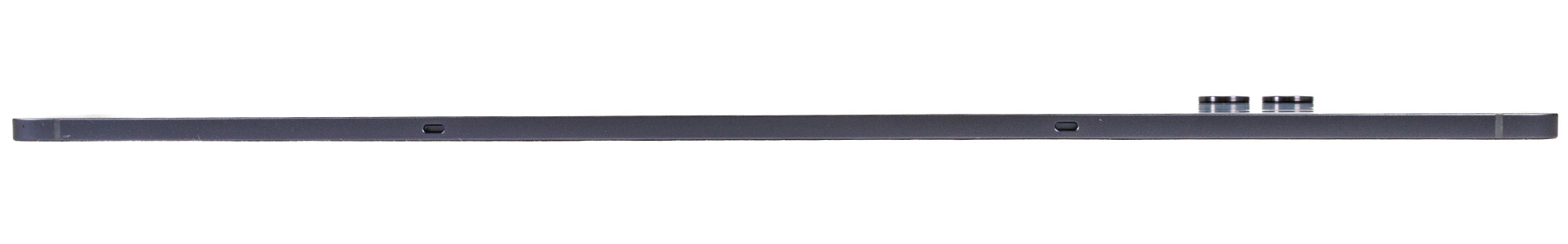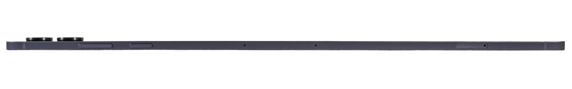 Le le boîtier déjà mince du modèle précédent a été rendu encore plus fin dans la Tab S11 Ultra de Samsung le boîtier déjà mince du modèle précédent a été rendu encore plus fin dans le Samsung Galaxy Tab S11 Ultra, avec une spécification de seulement 5,1 millimètres d'épaisseur, alors que nous avons en fait mesuré une épaisseur de seulement 5,05 millimètres. Les deux appareils photo dépassent de 2,15 millimètres chacun, mais l'appareil ne vacille pratiquement pas lorsqu'il est posé à plat sur une table.