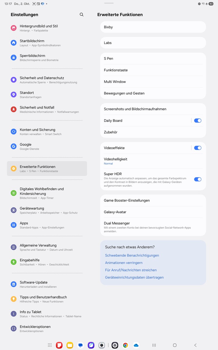 La tablette est équipée du processeur MediaTek Dimensity 9400+, de 12 Go de mémoire vive et d'un système de stockage rapide UFS 4.0, ce qui garantit des performances très élevées et un fonctionnement multitâche fluide. Android 16 avec One UI 8.0 et Galaxy AI fonctionne de manière stable sur l'appareil, et le nouveau mode DeX permet un travail productif avec plusieurs fenêtres directement sur la tablette.