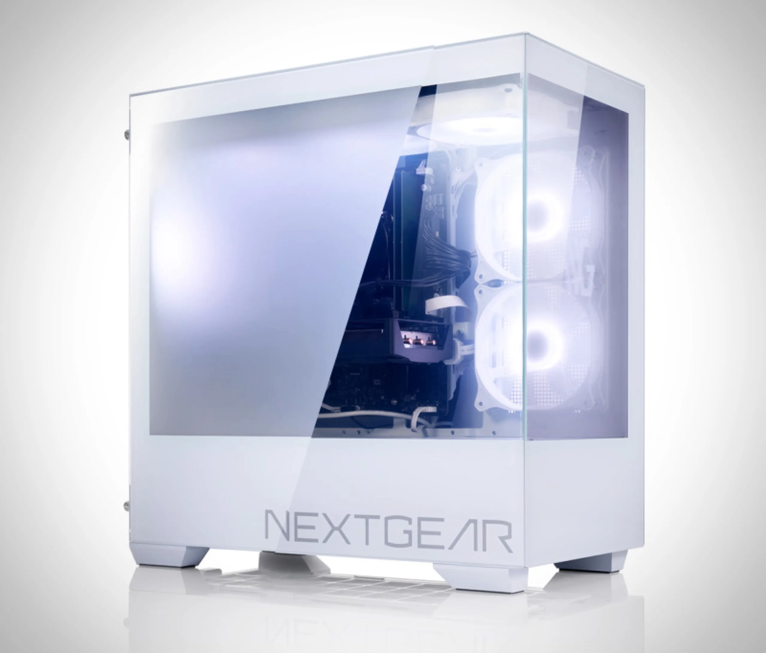 La caractéristique principale du boîtier Nextgear est que les fenêtres latérales peuvent être basculées en "mode furtif" via un bouton situé sur le dessus, ce qui lui donne un effet de verre dépoli. Dans ce mode, les composants internes ne sont plus visibles, mais l'éclairage RGB brille à travers la vitre, créant un effet élégant
