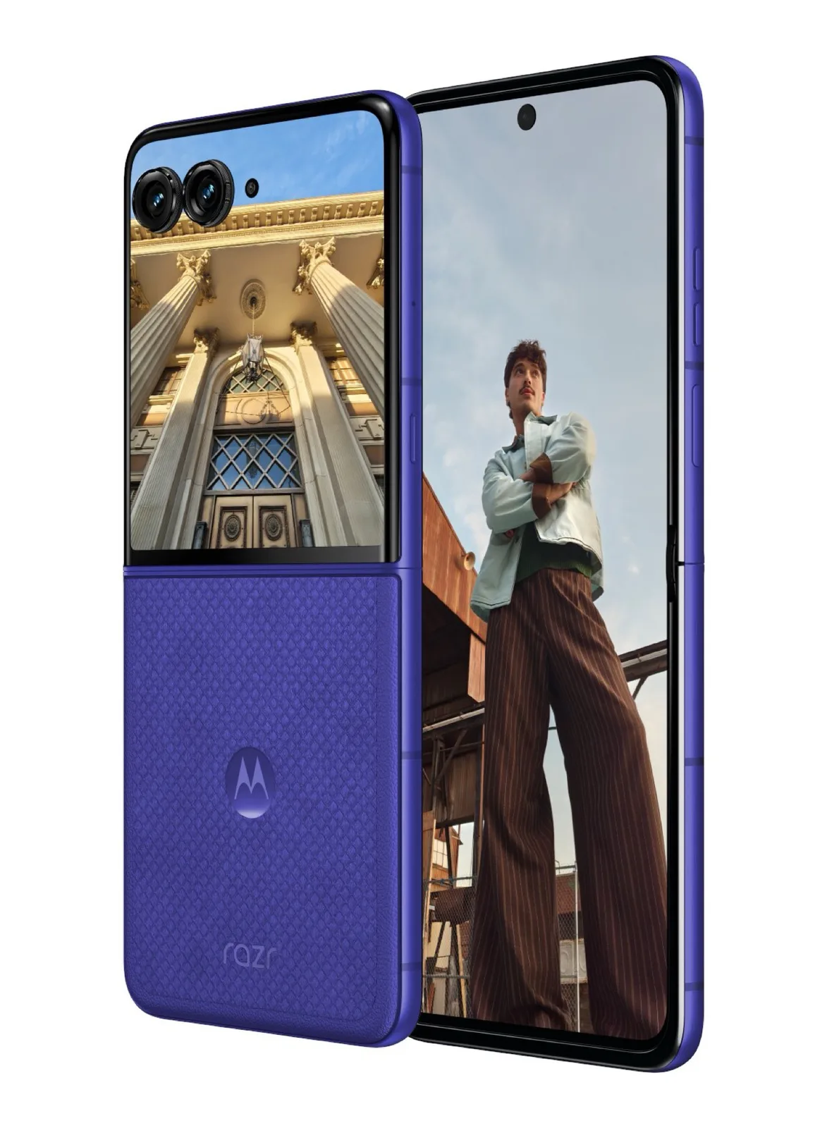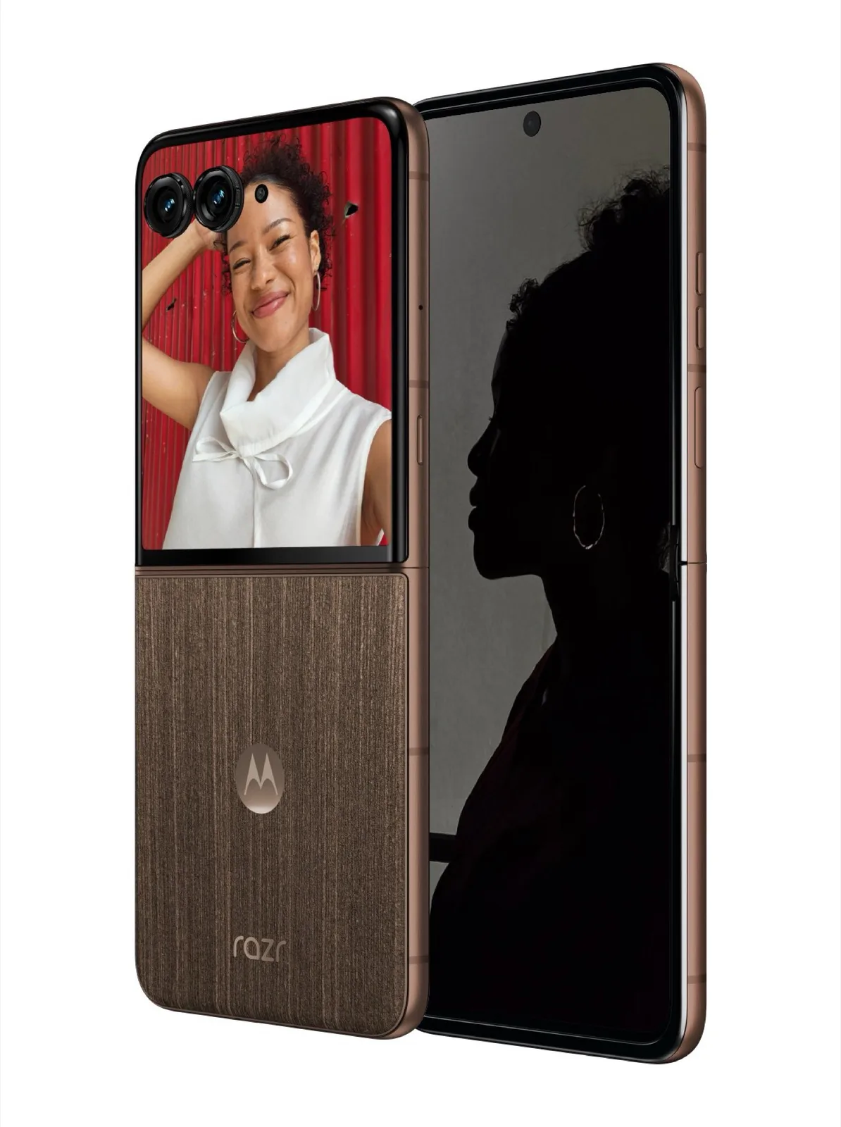 Comme prévu, le design ne change guère, le Razr Ultra 2026 étant proposé en bleu ou en marron. La vidéo promotionnelle démontre principalement les capacités de l'écran secondaire de 4 pouces. Motorola propose de nombreux designs différents, dont certains peuvent être complétés par vos propres photos. Certains de ces designs affichent des informations supplémentaires, telles que les prévisions météorologiques, la date ou la charge restante de la batterie