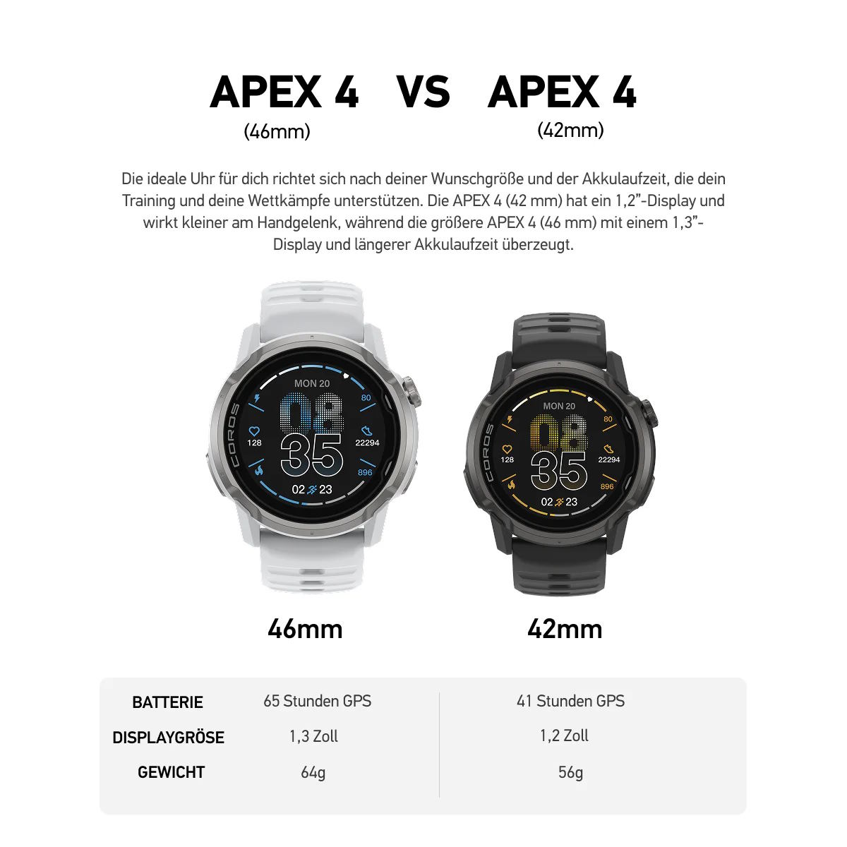 Le Coros Apex 4 a été récemment l'objet de teasers et est désormais disponible sur directement auprès du fabricant. Le prix du modèle 46 millimètres est de 479 $, tandis que la variante 42 millimètres est disponible pour 50 $ de moins. Le délai de livraison est de sept à dix jours. La Coros Apex 4 est fondamentalement une smartwatch et dispose même d'un haut-parleur et d'un microphone, ce qui vous permet non seulement de recevoir des notifications sur votre rythme, mais aussi d'enregistrer des messages vocaux et, si vous le souhaitez, d'utiliser la Coreos Apex 4 comme un dispositif mains libres Bluetooth.