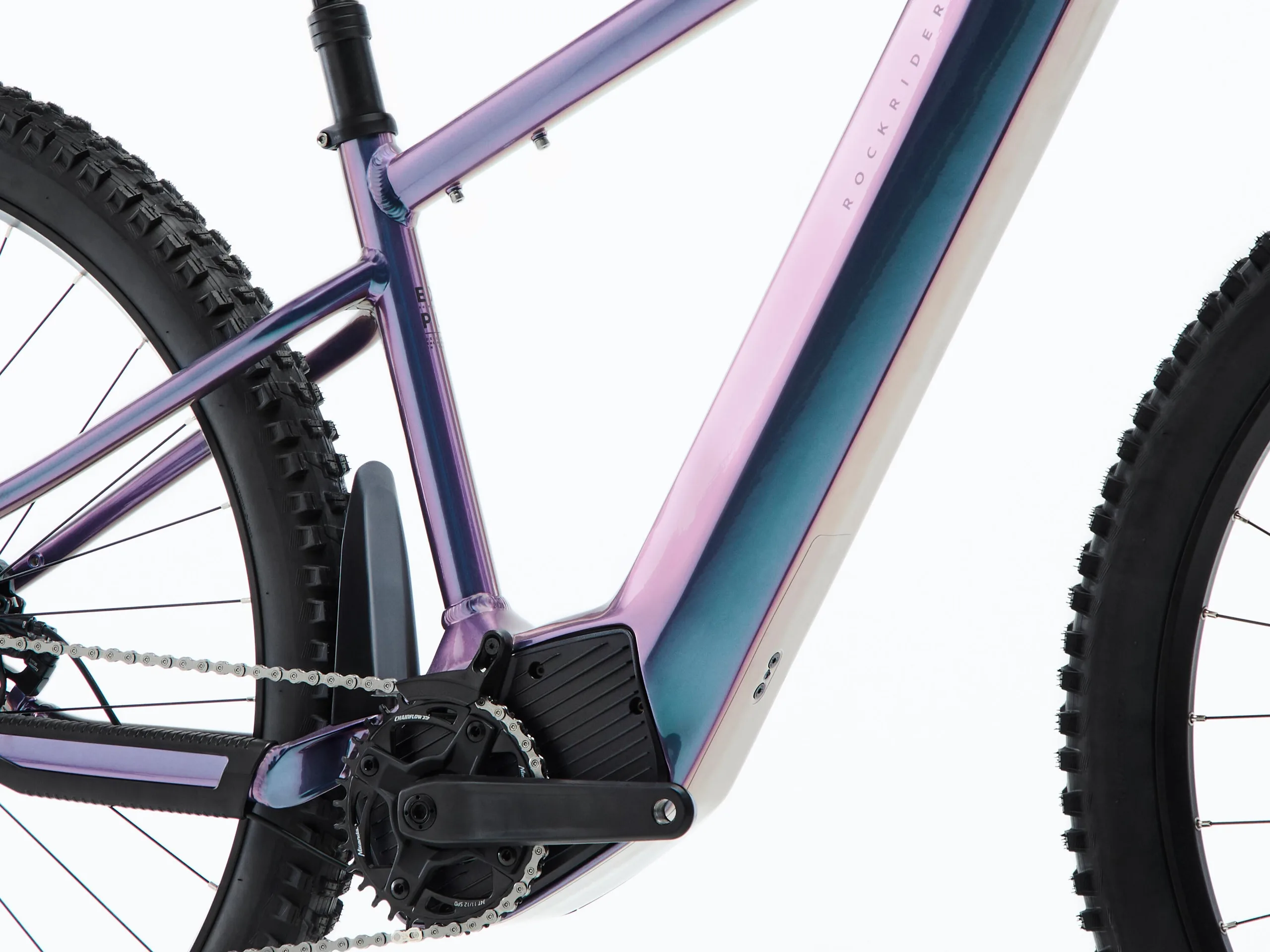 Decathlon a lancé une nouvelle version de son vélo électrique Rockrider E-EXPL 700 dans plusieurs pays européens comme le Royaume-Uni, les Pays-Bas et la France. Le nouveau modèle hardtail est doté d'un cadre violet irisé qui attire l'attention, tandis que la version originale, sortie en début d'annéea un cadre vert bouteille.