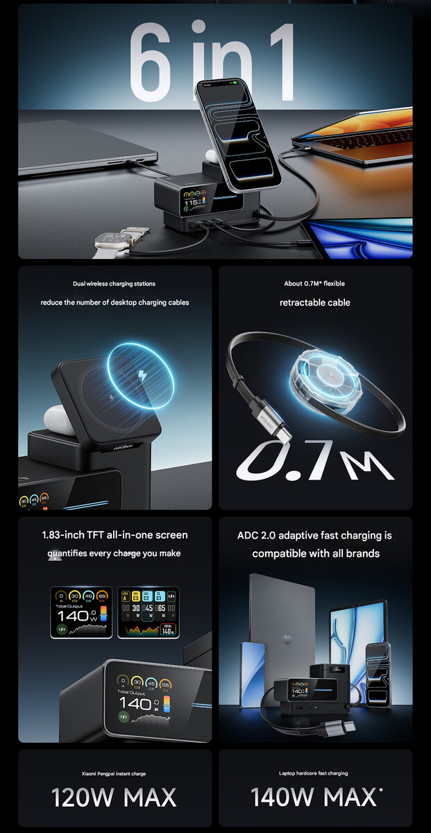 Ce nouveau chargeur de bureau prend également en charge le protocole de charge rapide de Xiaomi, ce qui permet de recharger les téléphones Xiaomi à une puissance maximale de 120 W. En ce qui concerne les autres téléphones, Cuktech note que le chargeur de bureau peut offrir jusqu'à 100 W de puissance. Parmi les autres points forts, citons un protocole de sécurité à 9 couches et un design élégant.
