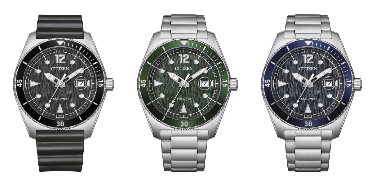 Citizen a lancé dans l'Union européenne de nouvelles montres Eco-Drive dotées de cadrans texturés. Basée sur la AW188, chaque version présente un motif vertical de coups de pinceau sur le cadran, dans un boîtier de 43 mm (~1,69 pouces) de large.