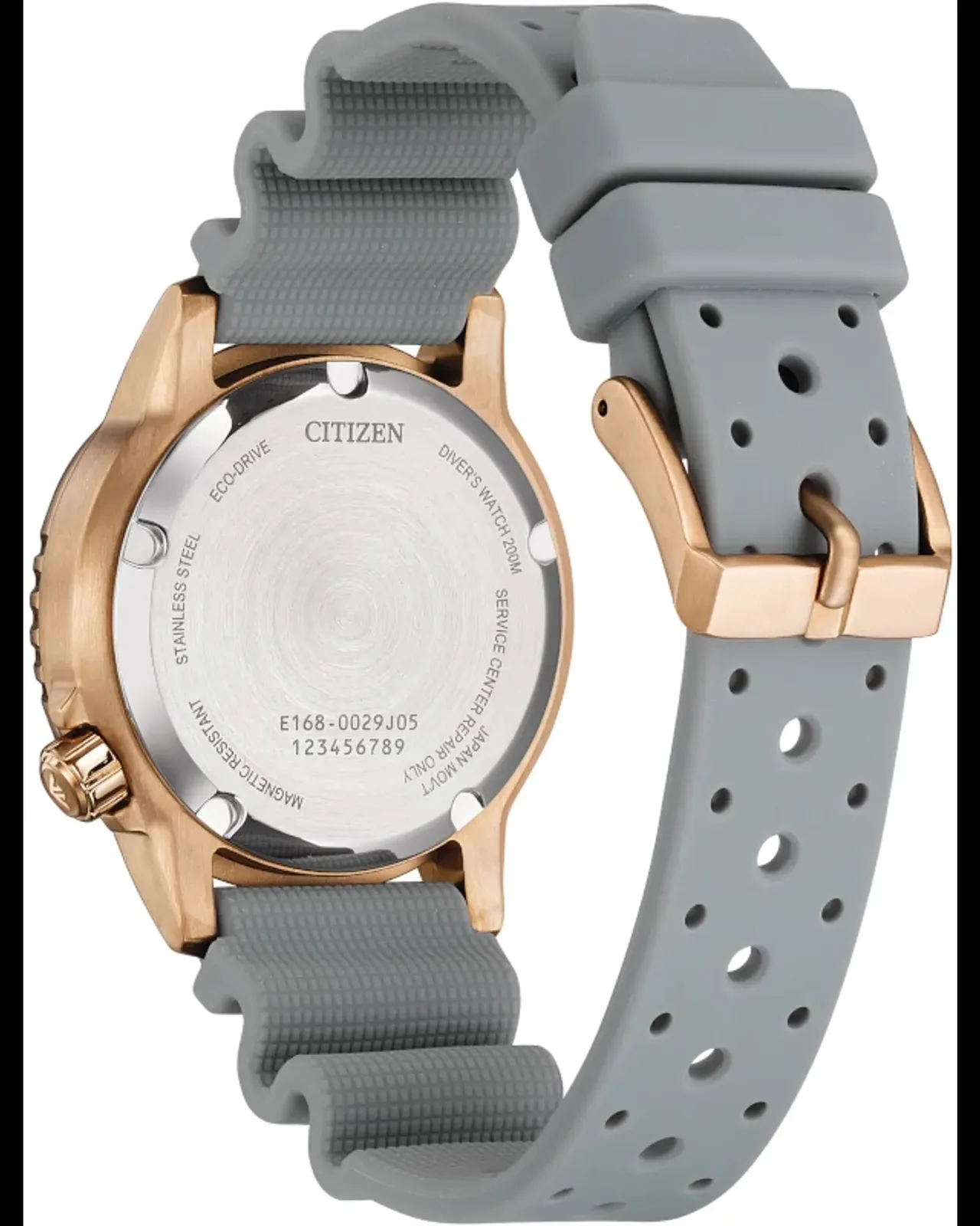 La BN0167-09W est dotée d'un boîtier en acier inoxydable de 44 mm aux finitions argentées et d'un bracelet sombre. La EO2023-00W est plus petite (36,5 mm) et se présente dans un boîtier en or rose avec un bracelet de couleur claire. Hormis la taille et la couleur, les deux modèles partagent le même design de base. Les deux montres fonctionnent avec le mouvement Citizen E168 Eco-Drivede Citizen, alimenté par la lumière. Elles offrent également une résistance à l'eau de 200 mètres, une lunette unidirectionnelle et un guichet de date à 3 heures. L'inscription BN0167-09W confirme la présence d'un verre minéral, et la EO2023-00W semble suivre les mêmes spécifications.