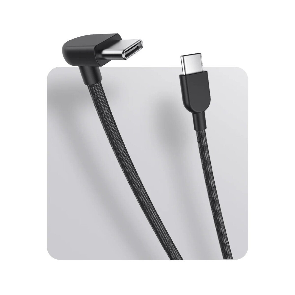 Le câble tressé 3A possède un connecteur coudé à 90° à une extrémité, qui pourrait être utile pour un ordinateur portable ou une station d'accueil. À l'autre extrémité se trouve un connecteur USB-C standard et plat. Selon la fiche produit, il offre une charge rapide jusqu'à 60 W. Il n'y a aucune mention d'un taux de transfert de données.