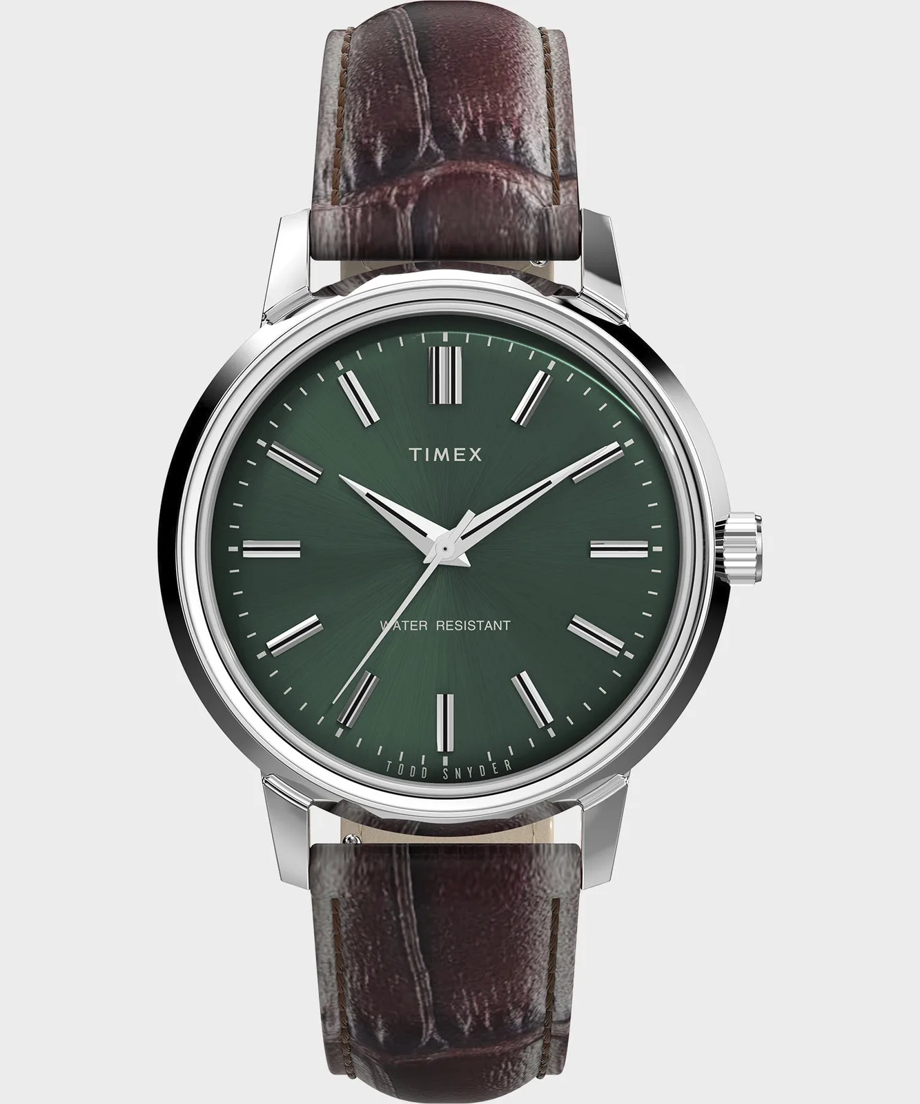 Todd Snyder a lancé une nouvelle collaboration avec Timex, en introduisant l'Olive Marlin Automatic en tant que modèle en édition limitée sur la boutique en ligne du designer https://www.toddsnyder.com/collections/new-arrivals/products/timex-x-ts-green-marlin-watch-in-brown-crocbrown. Son prix est de 279 dollars et elle est présentée comme une exclusivité TS, sans aucune remise promotionnelle. Une seule taille est disponible.