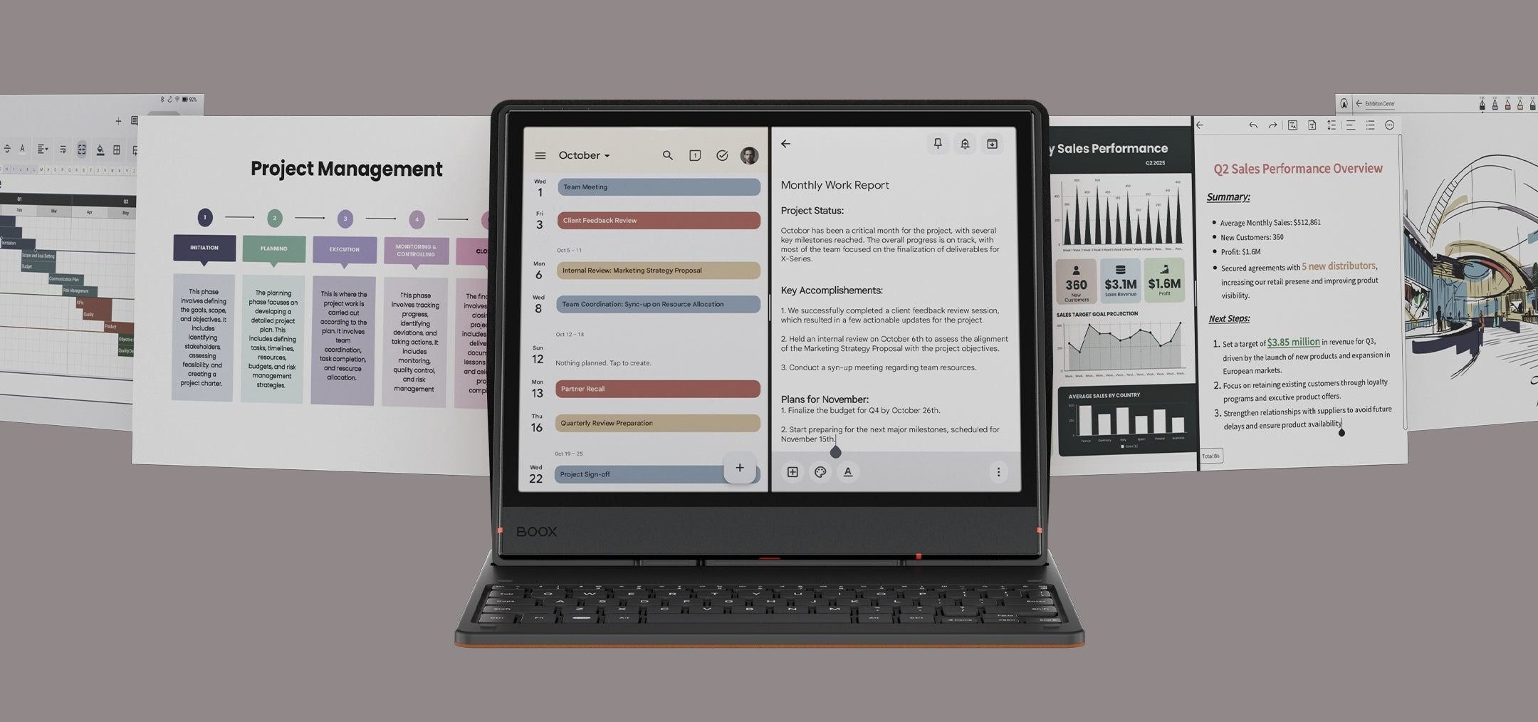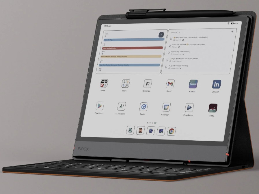 Boox l'accompagne d'un stylet avec cinq pointes supplémentaires et d'un étui magnétique de protection qui peut être utilisé en orientation portrait ou paysage. Si vous choisissez l'offre groupée de la housse de clavier, vous bénéficiez d'une remise de ~33$/€33 et payez 606,99$/€606,99 au lieu de 639,98$/€639,98.