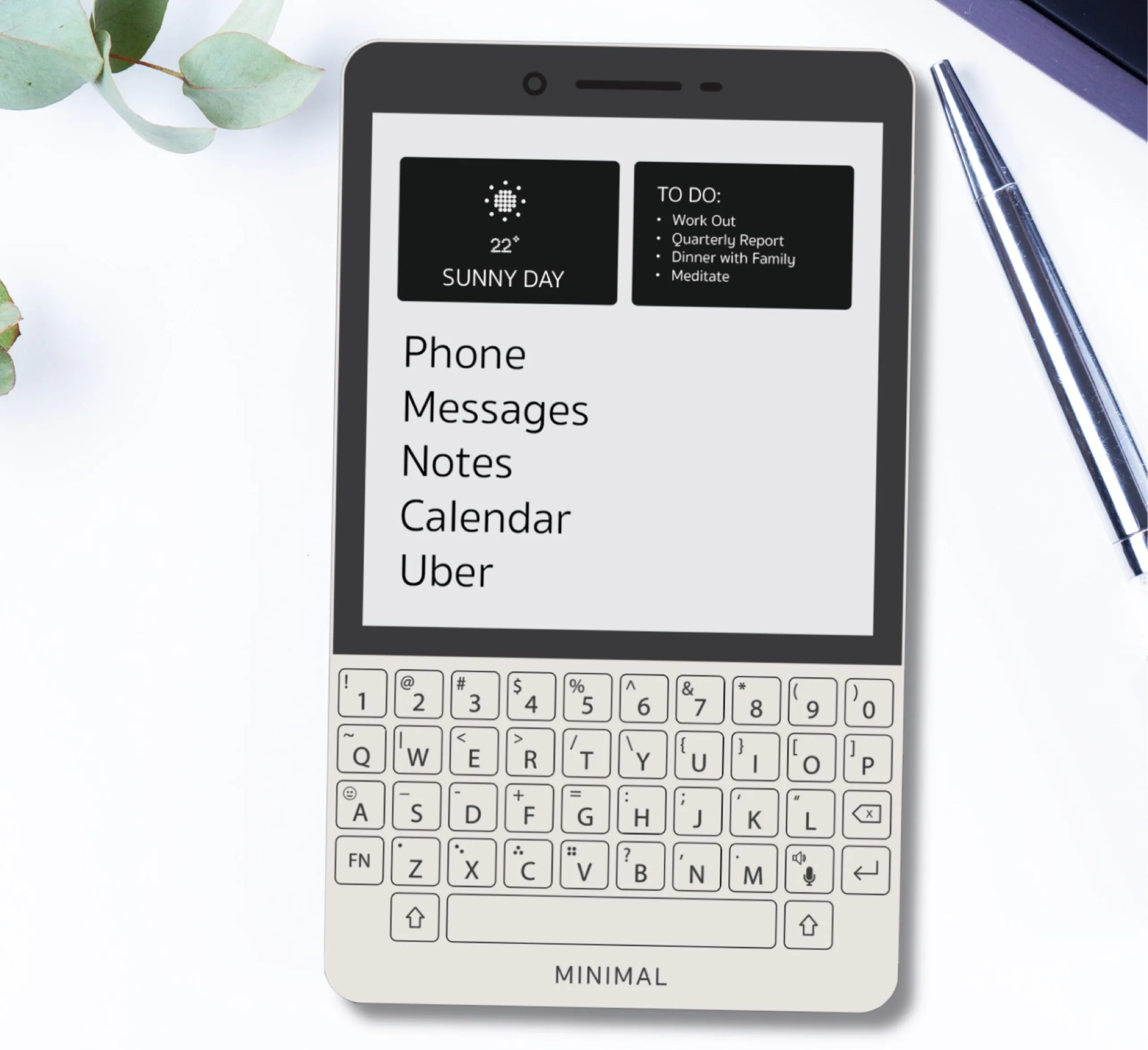 Minimal propose une alternative au smartphone moderne, le Minimal Phone, dont l'objectif est de fournir aux utilisateurs un smartphone qui ne les distrait pas du monde réel et ne les dérange pas avec des notifications. Pour ce faire, l'appareil se passe de réseaux sociaux, de jeux et utilise MnmlOS, un système d'exploitation très simplifié qui prend en charge de simples widgets et des applications tierces telles qu'Uber, en plus des applications mobiles les plus nécessaires.