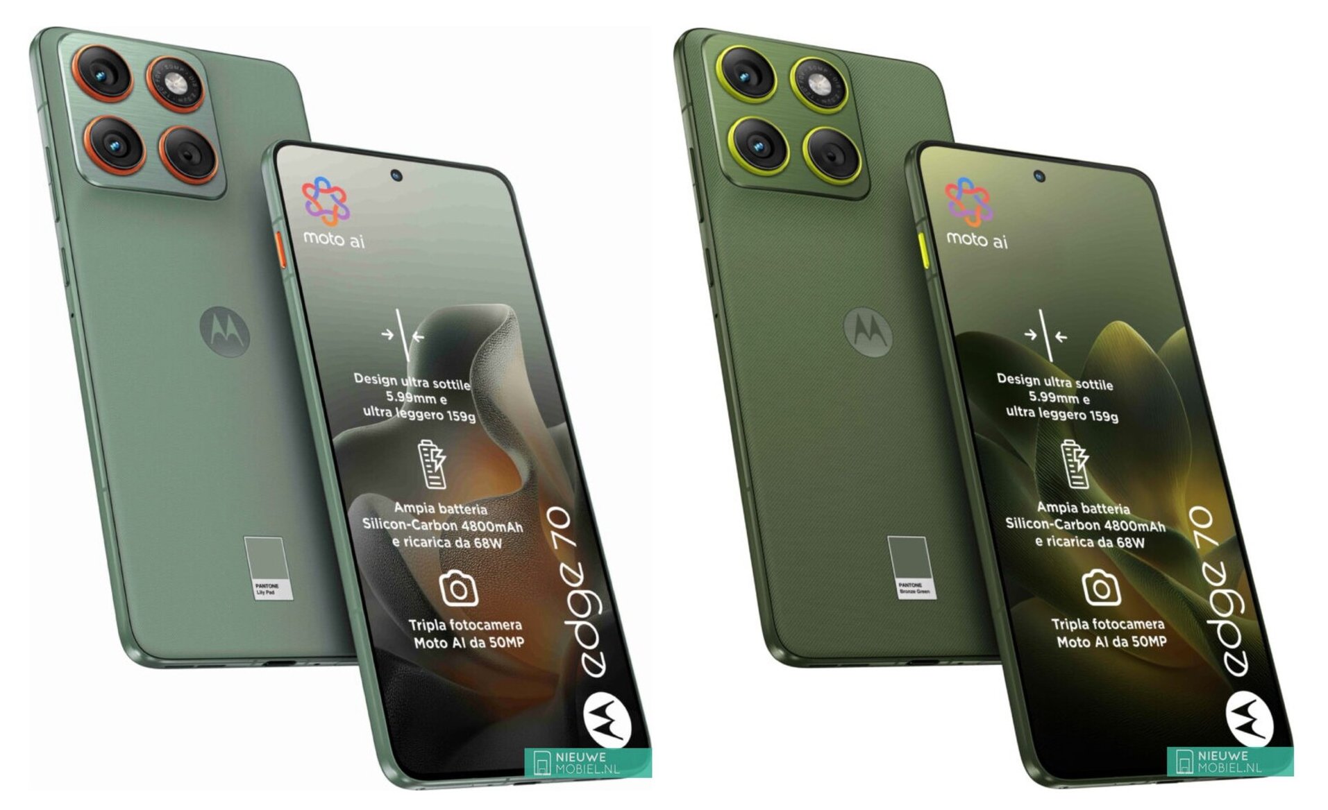 Aujourd'hui, Nieuwe Mobiel a obtenu plus de détails sur le Edge 70 avant la date prévue. Intégrées ci-dessous, deux des images réitèrent que Motorola prévoit de proposer le Edge 70 dans le même coloris Pantone Bronze Green et Pantone Lily Pad dans lesquels le Moto X70 Air a également été montré. En outre, ces mêmes images soulignent que le Edge 70 est doté d'une batterie de 4 800 mAh, bien qu'il soit à peine plus épais que le Moto X70 Air iPhone Air et le Galaxy S25 Edge (689 $ actuellement - d'occasion sur Amazon).