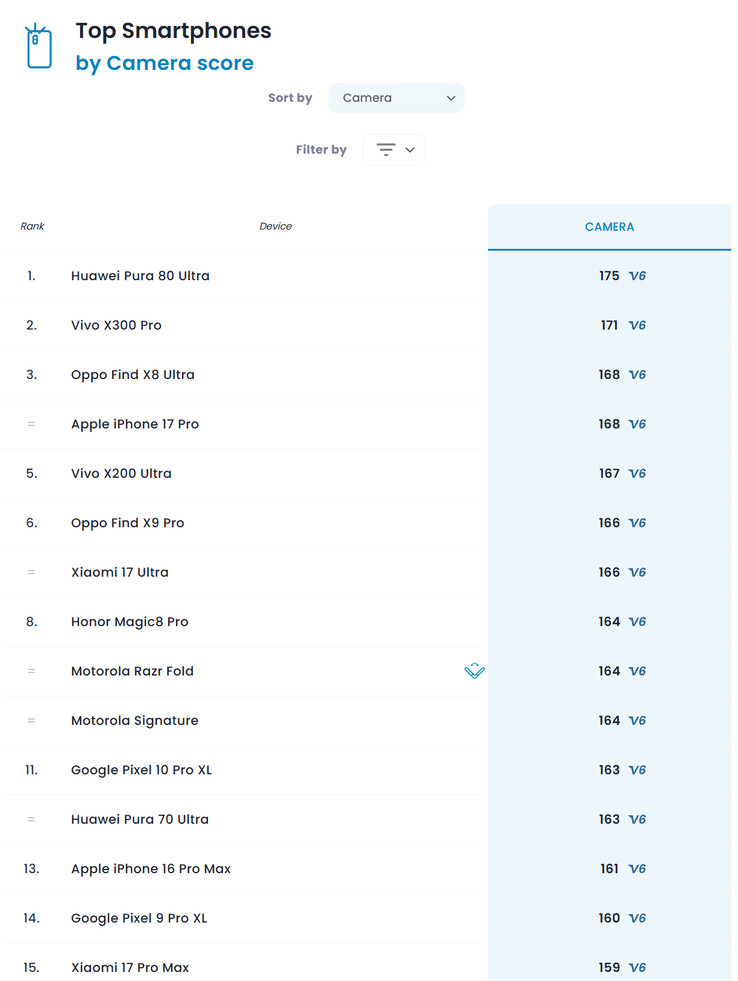 Comme le montre le tableau ci-dessous, le Razr Fold n'arrive pas à la cheville de fleurons modernes comme le iPhone 17 Pro, Find X9 Pro et le Xiaomi 17 Ultra avec un score de 164 points. Pendant ce temps, le Honor Magic V5 et le Samsung Galaxy Z Fold7 sont bien plus bas dans cette liste (1 809 $ actuellement sur Amazon). Le Razr Fold doit en partie ce résultat aux excellentes caméras téléobjectif et ultra grand-angle, qui sont souvent inférieures à leurs homologues primaires sur les appareils pliables.