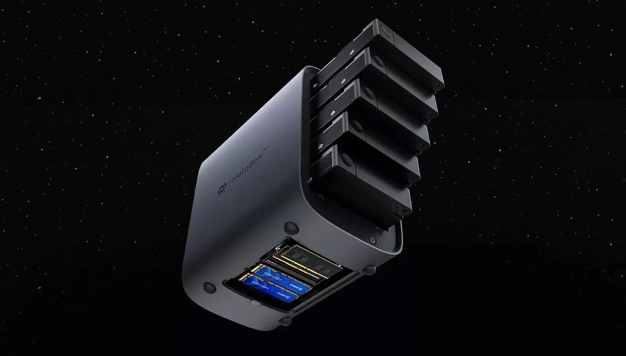 Le NAS MetaBox intègre deux disques SSD et cinq disques durs dans un boîtier métallique élégant