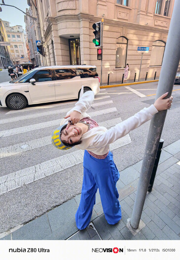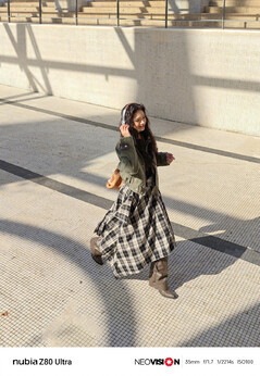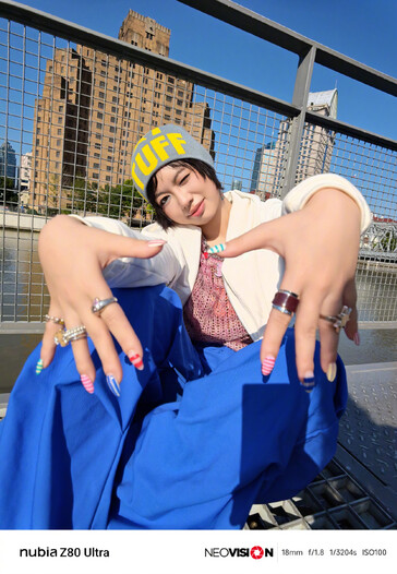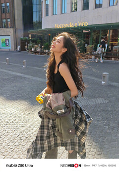 L'appareil photo ultra grand-angle est doté d'un capteur nettement plus grand, mais avec une longueur focale de 18 mm, il ne capture pas un champ de vision aussi large que son prédécesseur. Les exemples de photos ne sont pas particulièrement instructifs, car Nubia a pris ces clichés dans des conditions relativement peu exigeantes. Les tons de peau du modèle varient d'une image à l'autre, ce qui indique une balance des blancs modérément fiable, mais ces images affichent également des couleurs discrètes et des contrastes naturels