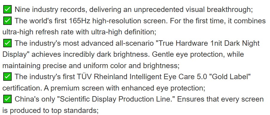 En raison des limites des matériaux luminescents et de la technologie des circuits, l'industrie n'est actuellement pas en mesure d'atteindre simultanément les spécifications 165 Hz et 2K. L'écran X3 165 Hz + 1,5K est la solution optimale et le summum de la technologie d'affichage des téléphones portables. Auparavant, la résolution la plus élevée pour les écrans à ultra-haut taux de rafraîchissement de 165 Hz sur les téléphones mobiles n'était que de 1080p. Cet écran X3 est le premier écran 165Hz + 1,5K de l'industrie. Après des années de validation par le marché, les écrans 1,5K constituent désormais un excellent équilibre entre la qualité d'affichage et l'efficacité énergétique sur de nombreux téléphones phares de grandes marques, de sorte qu'il n'y a pas lieu de s'inquiéter de l'expérience réelle. Deuxièmement, le taux de rafraîchissement ultra-élevé de 165 Hz offre une expérience fluide sans précédent et représente l'avenir des écrans de téléphones portables.