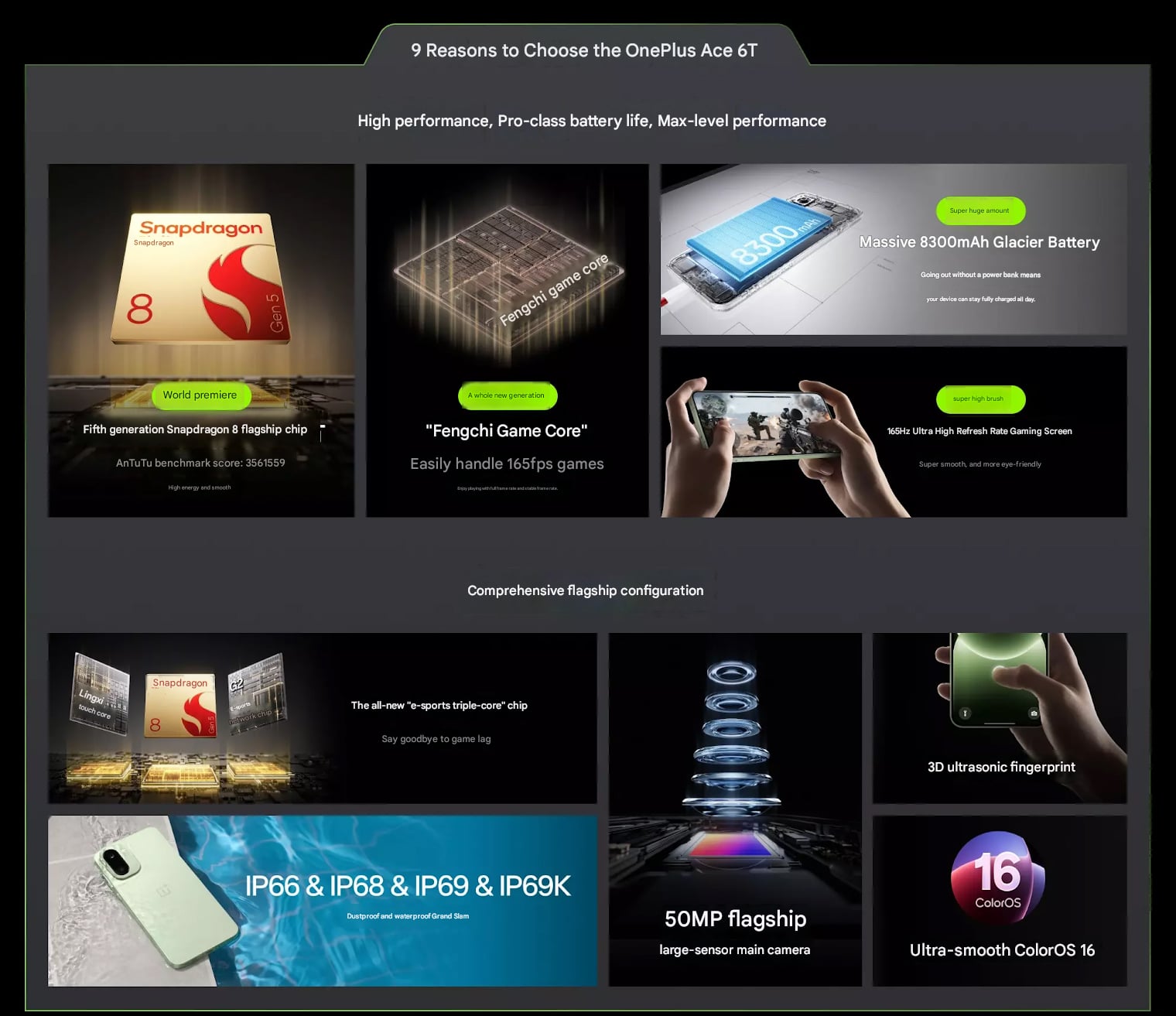 En parlant de cela, la société se vante également d'avoir intégré de nombreuses améliorations de jeu dans le OnePlus 15R chinois. Le Snapdragon 8 Gen 5 Est associé au WiFi G2 et à une puce Touch Response dédiée, ce qui promet une expérience de jeu compétitive et fluide.