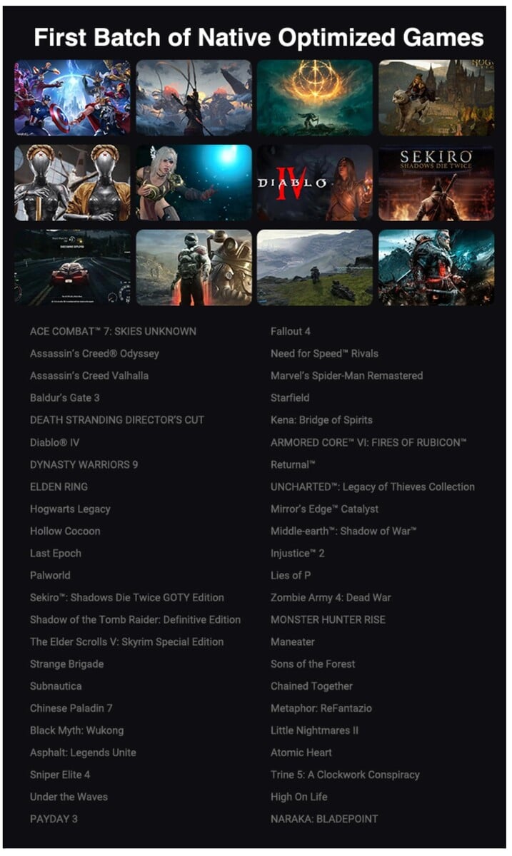 Environ 50 titres de jeux Steam seront optimisés pour le jeu en 3D d'ici la fin du mois de novembre, et d'autres titres viendront s'ajouter au fil du temps. Avec ces titres, 3D One accède directement aux informations de profondeur du moteur de jeu. Tous les autres jeux, vidéos et images seront convertis automatiquement et en temps réel par le logiciel de conversion 2D-3D MagicView.