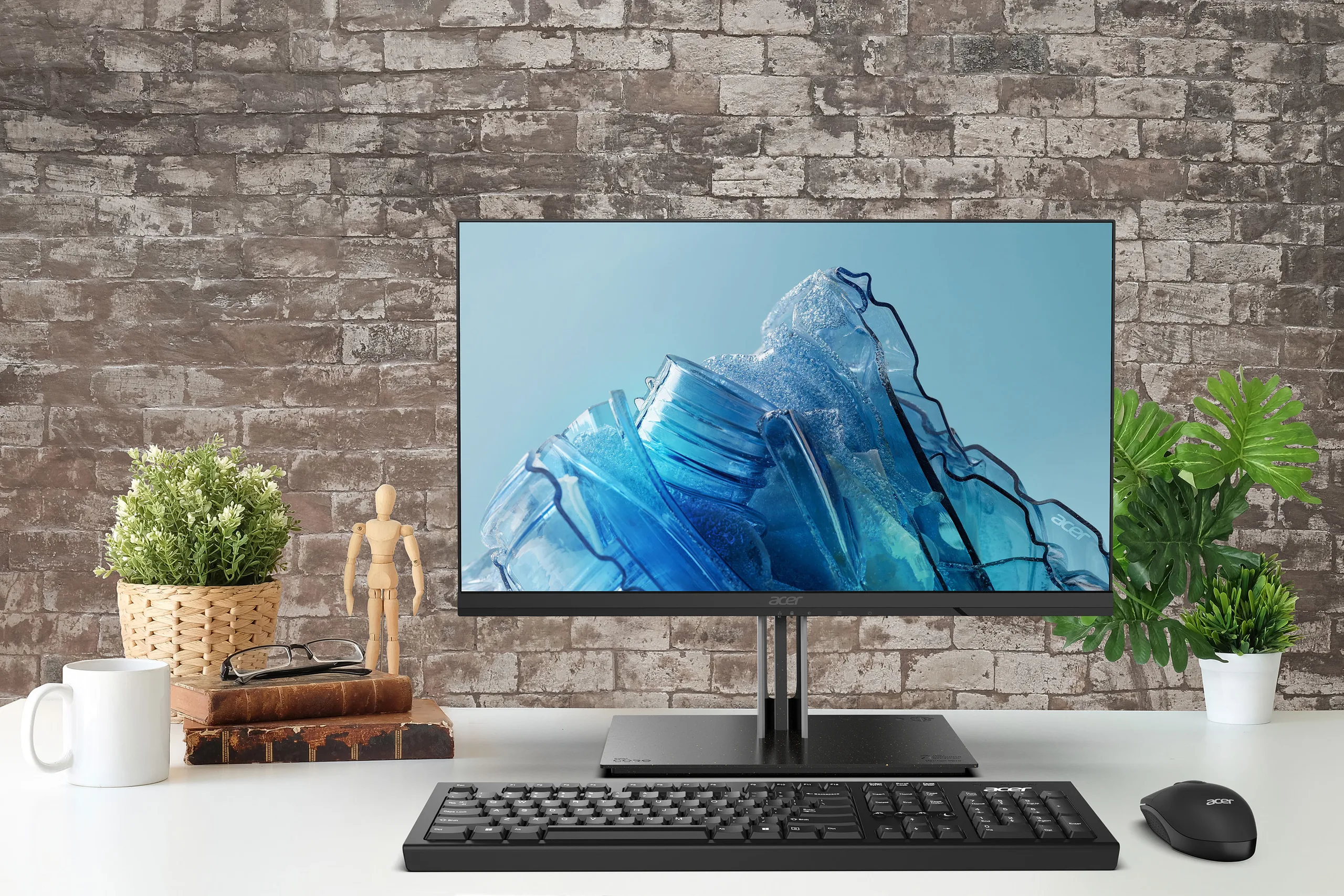L'Acer Veriton Vero (VVZ4694G) est un nouveau PC tout-en-un qui veut trouver un équilibre entre durabilité et performance. Acer affirme qu'il est fabriqué à partir de 30 % de matériaux recyclés post-consommation. Le clavier et la souris inclus réutilisent également les déchets plastiques. La réparation est également beaucoup plus facile, car on peut facilement retirer le panneau arrière sans outil. Le support VESA inclus offre de nombreuses possibilités de montage mural.