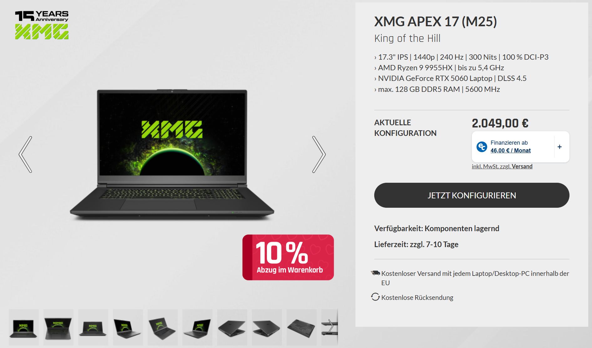 Lorsque nous avons terminé notre examen de l'Apex 17 il y a quelques jours, l'ordinateur portable était encore affiché au prix de 1 899 € dans la boutique officielle de XMG sur bestware.com. Sur , notre canal Redditdes utilisateurs ont fait remarquer que ce prix était déjà trop élevé et qu'il existait des alternatives plus abordables.