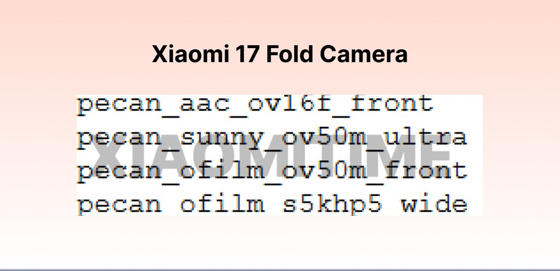 Selon XiaomiTimele code HyperOS contient des références à l'appareil photo de " pecan ", un nom de code présumé pour le Xiaomi 17 Fold. Comme le montre l'image ci-dessous, le pecan est équipé de la caméra S5KHP5 comme appareil photo principal. Abréviation de Samsung ISOCELL HP5, le S5KHP5 dispose d'une sortie native de 200 MP et devrait être utilisé dans des appareils comme le Find X9 Pro comme le Find X9 Pro en tant que téléobjectif.