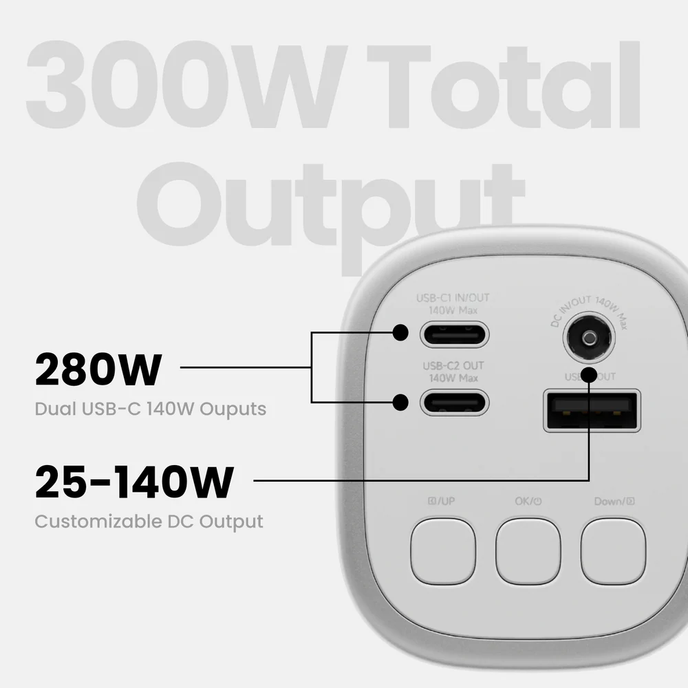 La nouvelle puissance Shargeek 300 de Sharge tire son nom de sa capacité à fournir une sortie combinée maximale de 300W à partir de ses quatre ports. Il y a deux ports USB-C de 140W, qui pourraient être utilisés pour charger deux ordinateurs portables simultanément. Il y a également un port USB-A et une sortie CC jusqu'à 140W. De plus, il prend en charge le protocole de charge rapide PD 3.1.