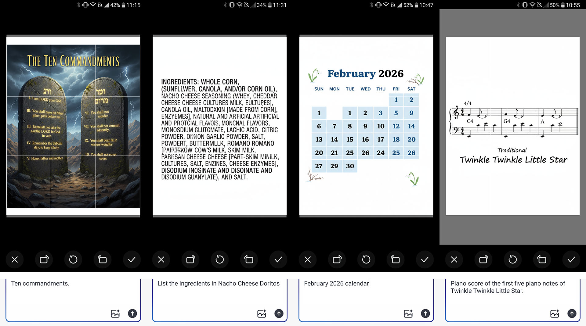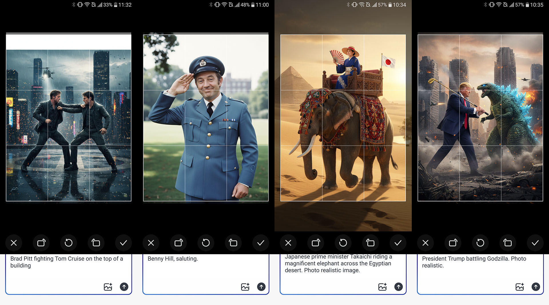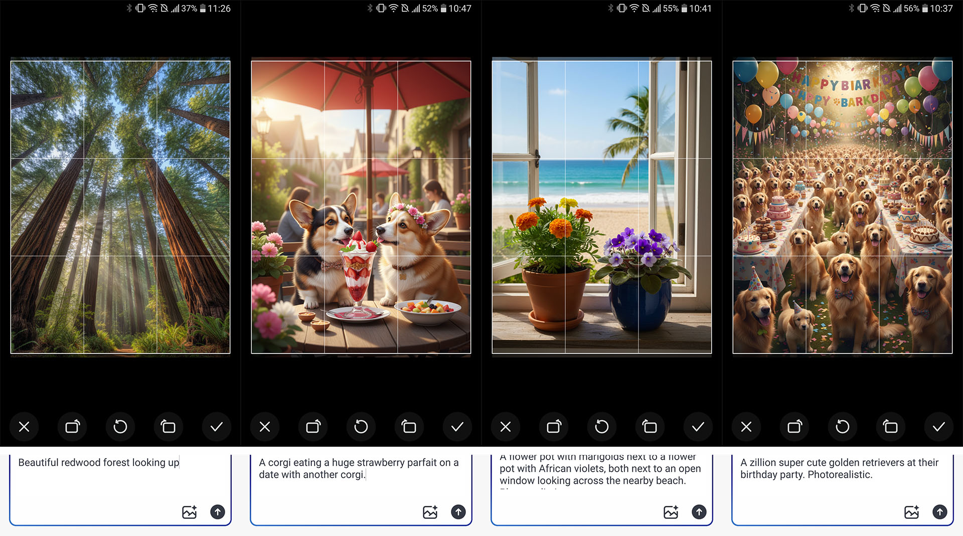 L'IA est médiocre pour générer des textes, des cartes et des calendriers corrects, assez fiable pour créer des listes de tâches et des menus, parfois peu fiable pour créer des personnages connus, et tout à fait convenable pour créer des dessins animés, des scènes de nature relaxantes ou une foule d'adorables golden retrievers. Des hallucinations peuvent survenir lors de la création d'un dessin animé, comme un train roulant sur une rivière ou un objet incorrect.