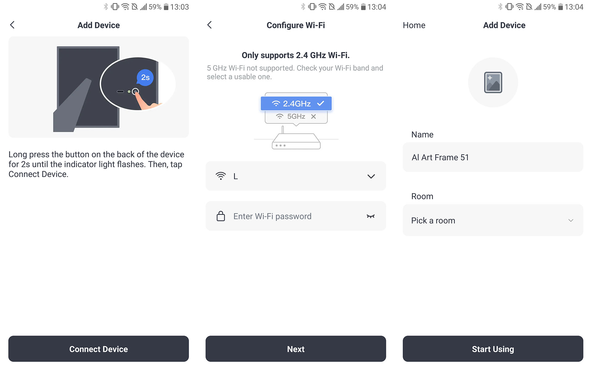 Le cadre artistique nécessite des connexions Bluetooth et Wi-Fi, ainsi que l'application, pour être configuré, ce qui empêche de l'utiliser dans une cabine éloignée, sur un bateau ou dans tout autre endroit dépourvu de Wi-Fi.