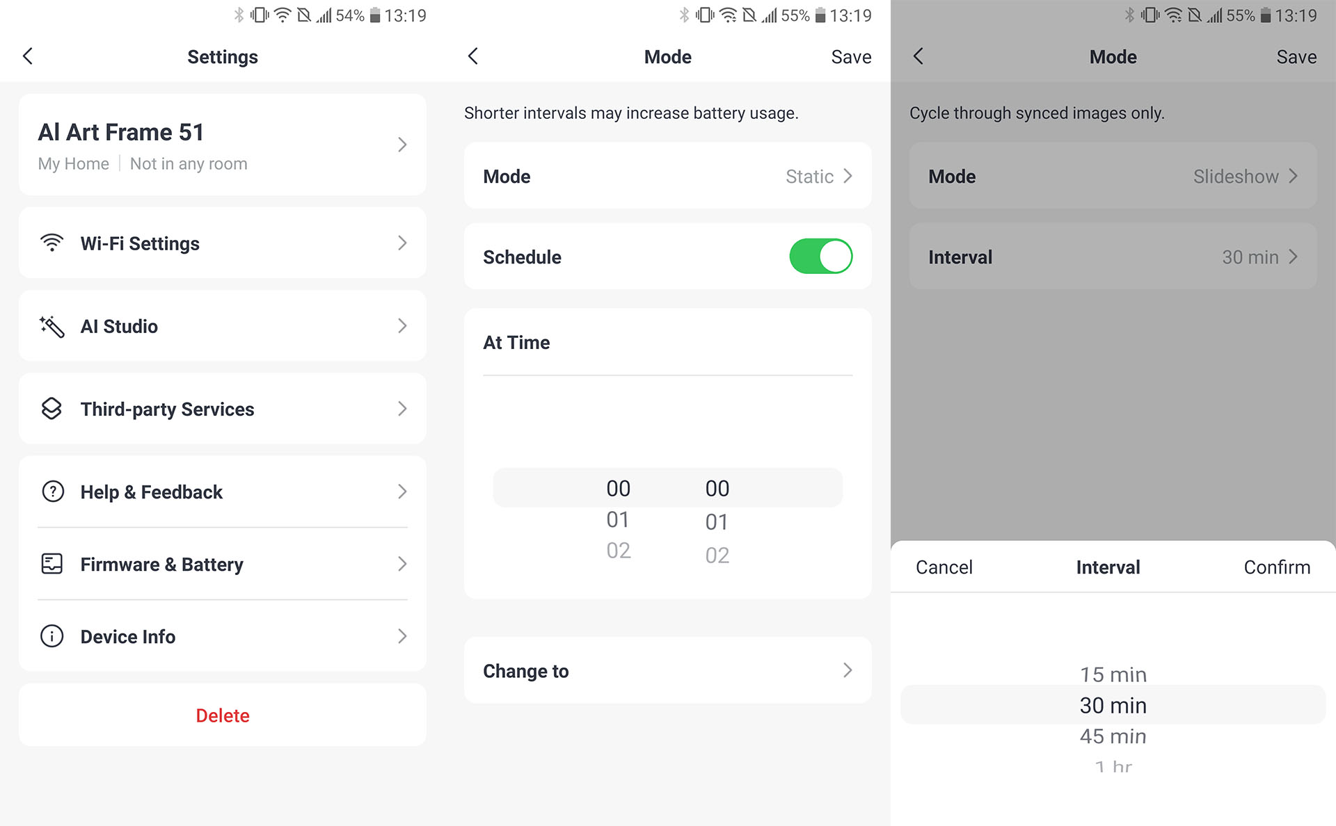 Les utilisateurs peuvent synchroniser des images de leur album photo, de la galerie d'art classique gratuite et de la galerie d'art AI. Jusqu'à 10 images peuvent être téléchargées et modifiées à un moment ou à un intervalle donné.