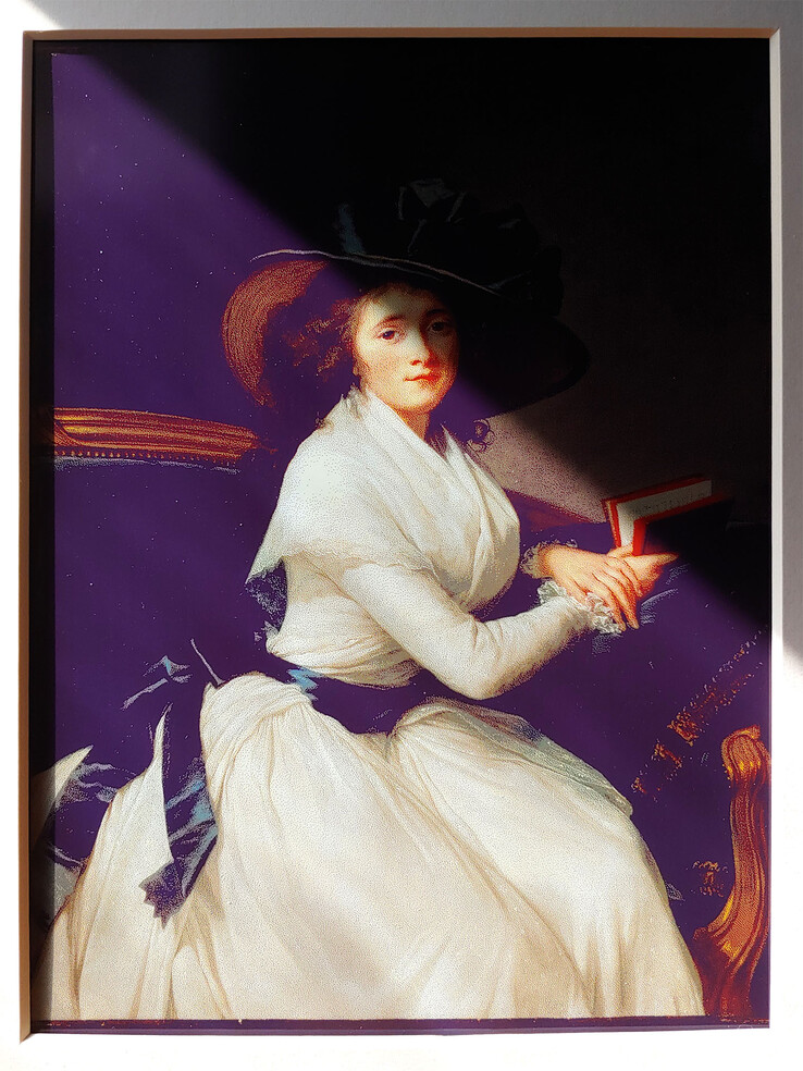 La qualité absolue de l'image est inférieure à celle d'un téléviseur OLED 4K à cadre artistique ou d'une impression photo. Le panneau n'offre que 65 000 couleurs et une faible résolution, de sorte que les pixels individuels sont apparents de près.