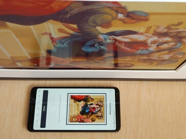 L'écran E Ink produit un noir violet foncé plutôt qu'un noir charbon, ce qui est particulièrement visible sous la lumière directe du soleil. Contrairement aux écrans brillants, il reste parfaitement visible sous la lumière du soleil.
